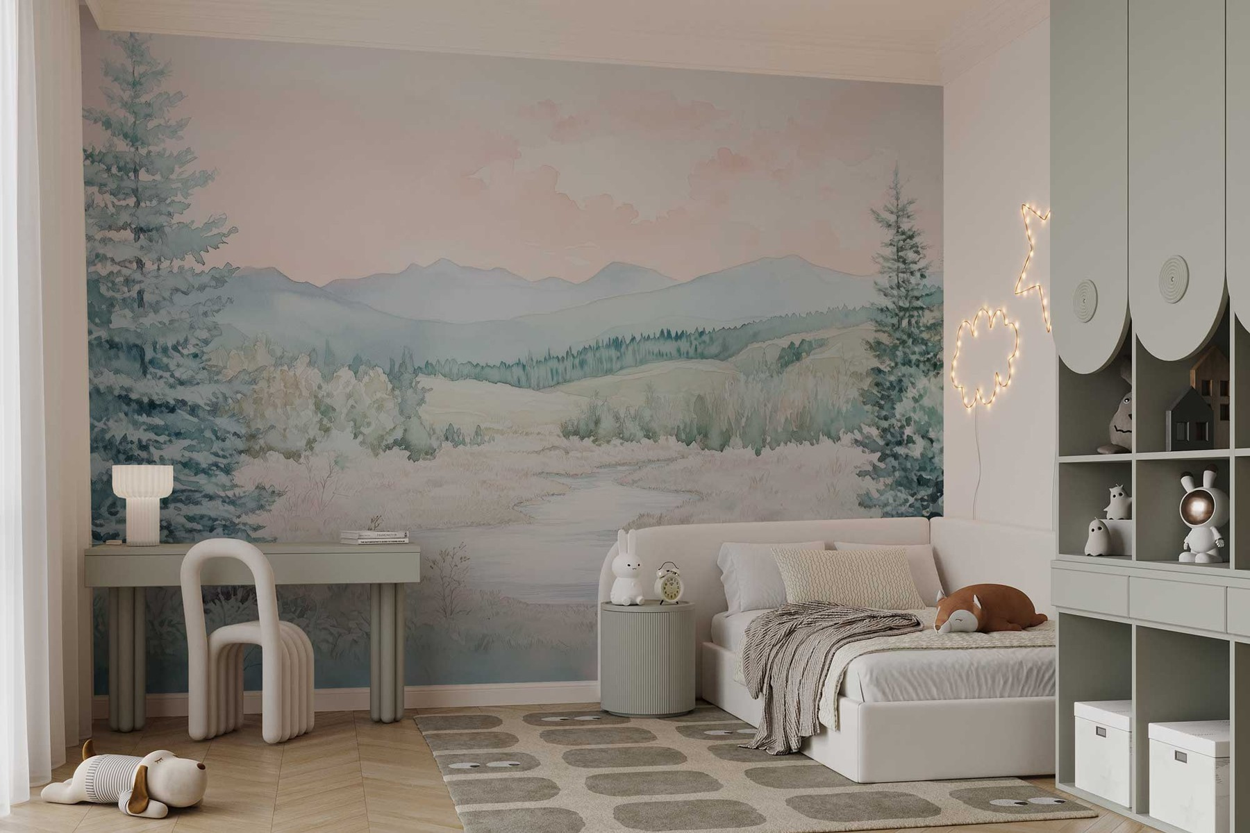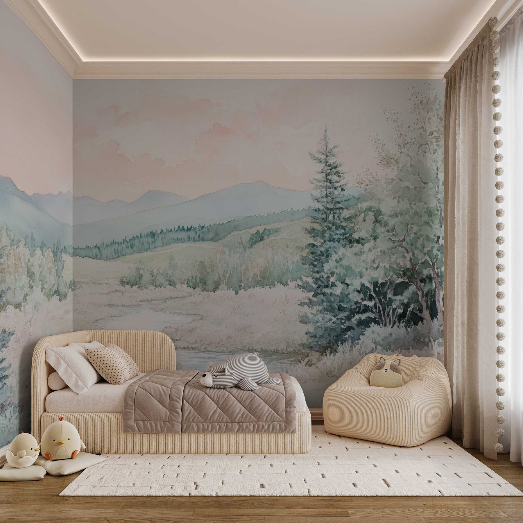 Transformați un perete simplu într-o evadare senină cu această pictură murală în acuarelă încântătoare a unui râu care șerpuiește printr-o vale luxuriantă. Această frumusețe captează pasteluri moi și tușe blânde, făcând-o să se simtă ca o îmbrățișare confortabilă pentru orice spațiu. Imaginați-vă sorbindu-vă cafeaua de dimineață în timp ce priviți această scenă liniștită – este ca o mini-vacanță chiar acasă. Perfectă pentru dormitoare sau camere de zi, aceasta adaugă o vibrație liniștitoare care poate calma chiar și cele mai aglomerate zile. În plus, iubitorii de natură se vor simți ca acasă aici, înconjurați de copaci și munți uimitori. Haideți – aduceți puțin aer liber în casă și lăsați pereții să spună o poveste despre liniște!