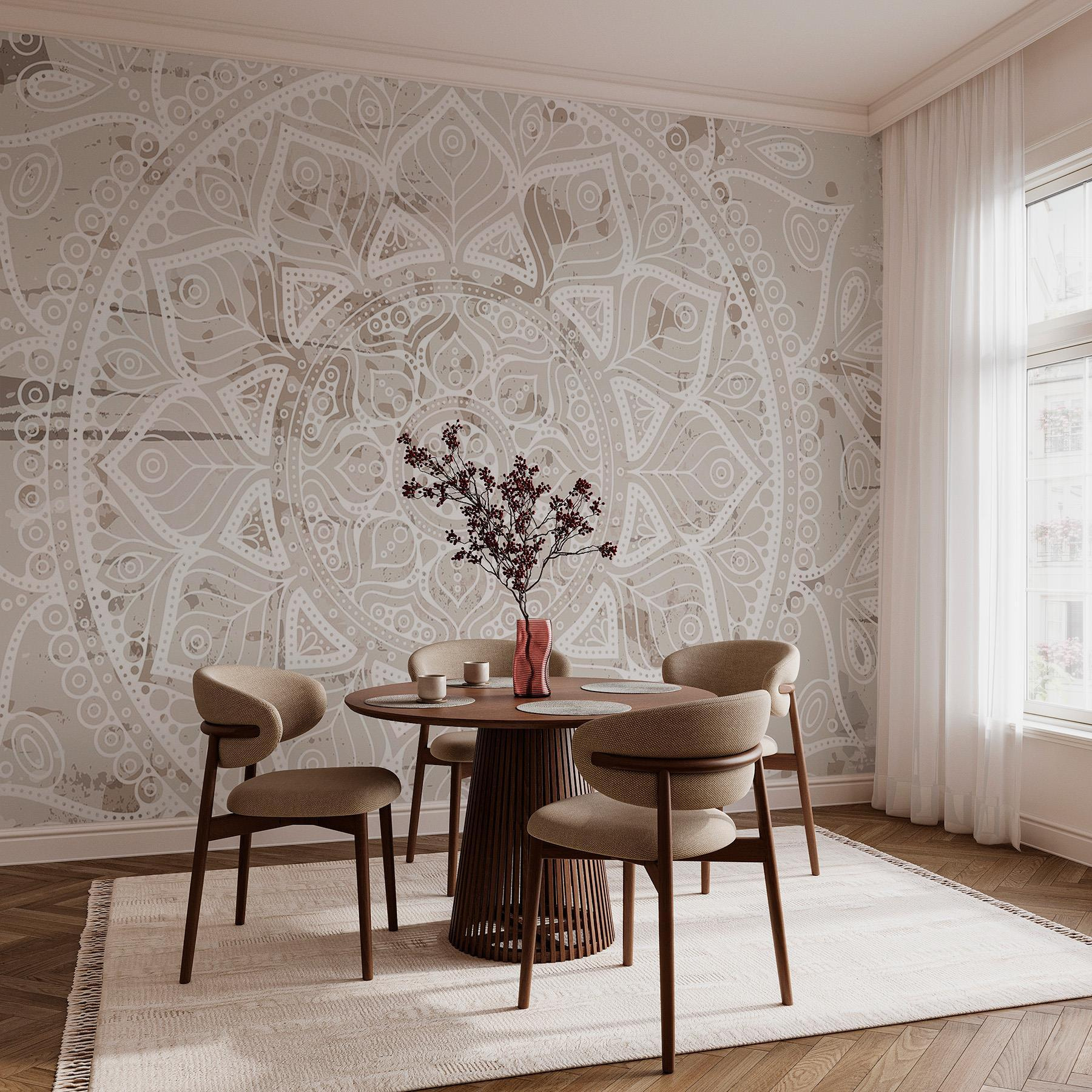 Fototapet Mandala albă pe o suprafață maro Fototapet Mandala albă pe o suprafață maro
