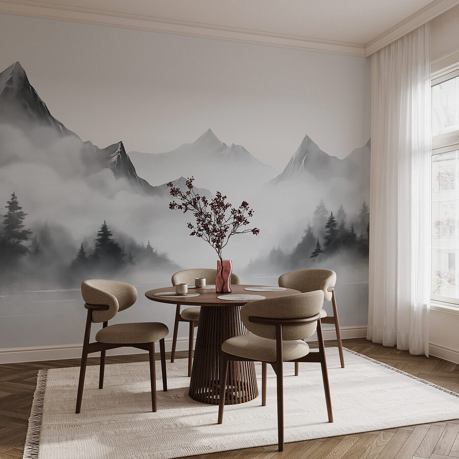 Imaginați-vă că pășiți într-o cabană confortabilă în care ceața moale se rostogolește peste munți maiestuoși. Această pictură murală, “Foggy Mountain Landscape”, aduce această atmosferă în spațiul dvs., transformând obișnuitul în ceva magic. Amestecul blând de tonuri stinse vă învăluie camera în căldură, ca o îmbrățișare din partea naturii, dar fără cizmele murdare de noroi. Este perfect pentru sufragerie, dormitor sau chiar pentru un colț liniștit de lectură. Imaginați-vă sorbind ceai, pierdut într-o carte bună, în timp ce priveliștea senină vă șoptește relaxare. Este ca și cum ai avea propria ta felie de aer liber, fără insectele enervante. Farmecul primitor al acestei picturi murale face ca fiecare zi să se simtă ca o mini evadare.