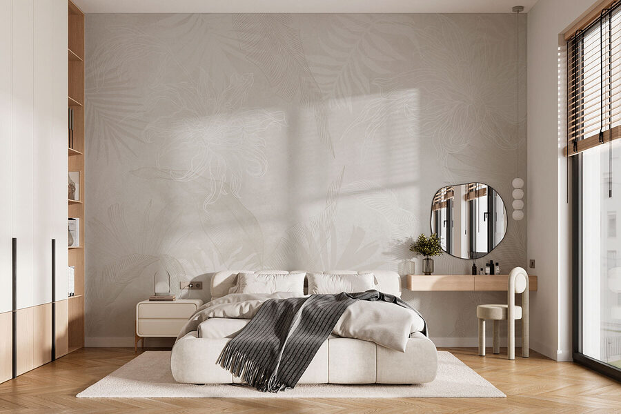 Transformați orice spațiu într-o oază de seninătate cu această murală uimitoare, cu un fundal alb subtil împodobit cu frunze elegante. Este ca și cum ați aduce natura în interior – fără insectele enervante. Imaginați-vă că vă treziți într-o cameră în care contururile blânde ale frunzelor de palmier șoptesc relaxare și vibrații calme. Perfect pentru acel colțișor de lectură la care visați sau chiar pentru o notă jucăușă pe hol. Un pic de terapie prin natură nu strică nimănui, nu-i așa? Tonurile blânde se potrivesc de minune cu aproape orice decor, oferind spațiului dvs. o senzație proaspătă, aerisită. Crede-ne, pereții tăi îți vor mulțumi!