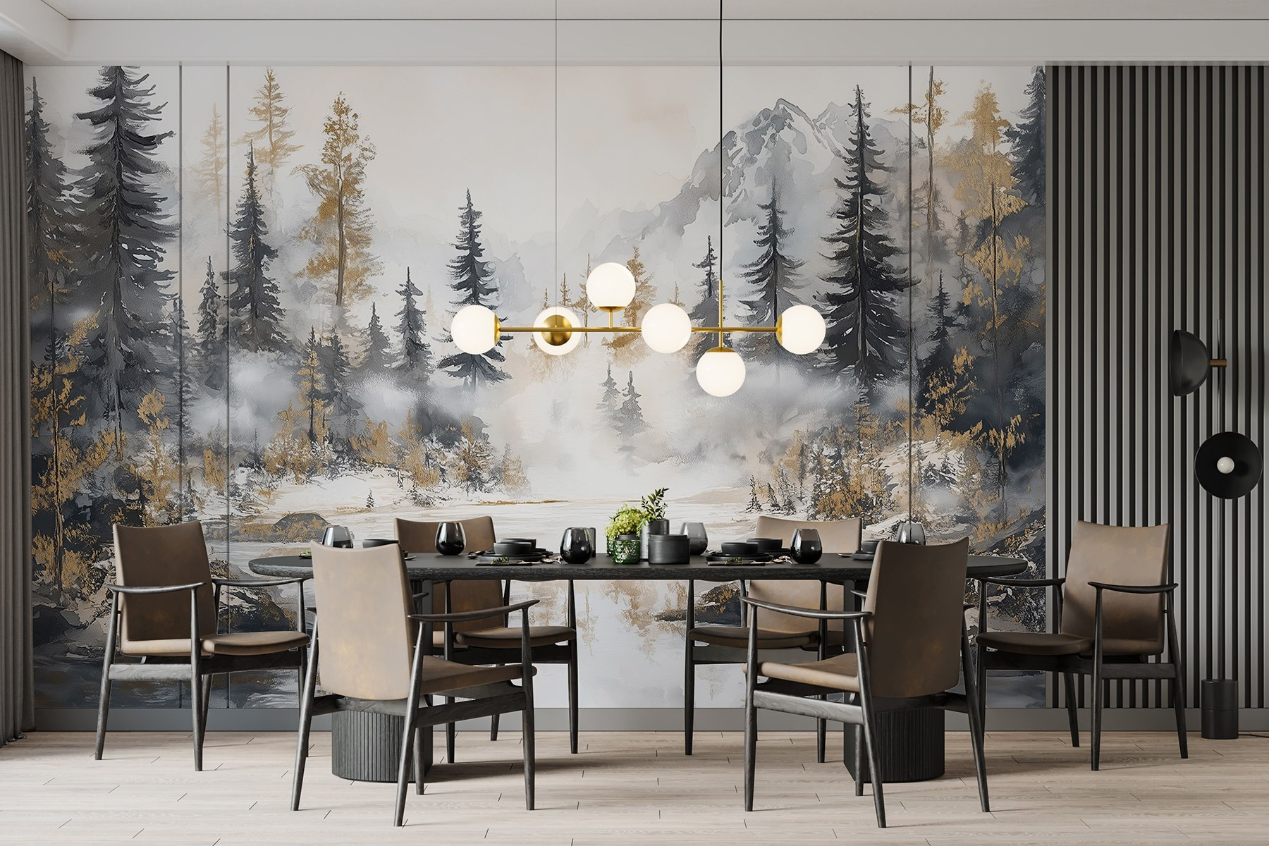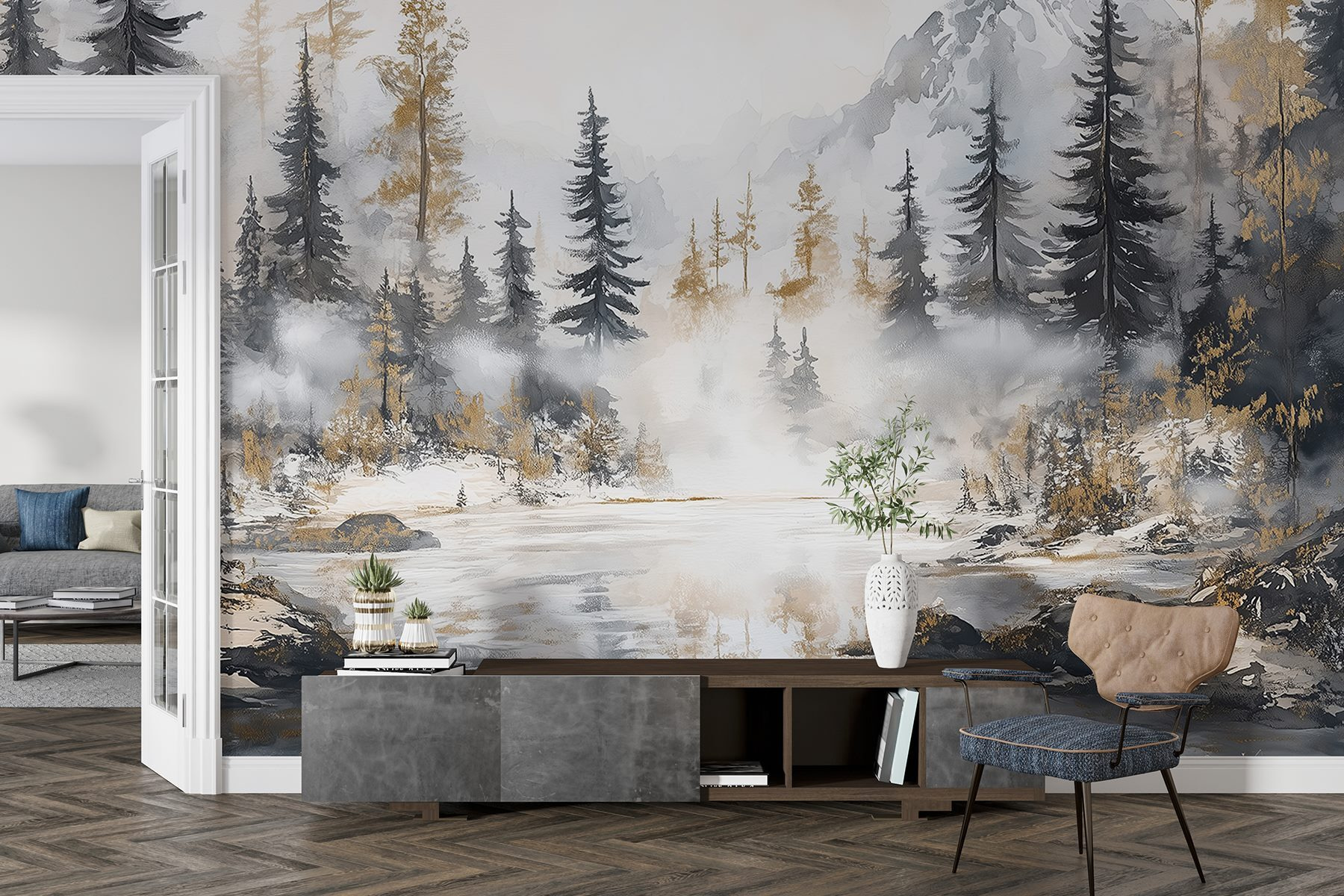 Transformați-vă spațiul într-o evadare senină cu această pictură murală uimitoare în acuarelă a unei păduri și a munților. Este ca și cum ați aduce calmul naturii în interior, fără mușcături de insecte și pantofi plini de noroi. Imaginați-vă seri confortabile petrecute lângă “foc” (sau doar o lumânare pâlpâitoare) în timp ce priviți copacii cețoși și vârfurile înalte – cine are nevoie de bocanci de drumeție când aveți această frumusețe pe perete? Perfectă pentru o cameră de zi sau pentru un colț liniștit de lectură, această pictură murală șoptește relaxare. Este un memento artistic pentru a respira adânc și a lăsa natura să-și facă magia, chiar în casa ta.