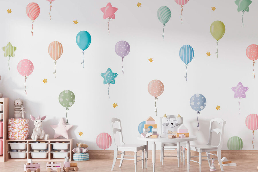 Înveseliți orice cameră cu această pictură murală încântătoare cu baloane fermecătoare și stele capricioase! Imaginați-vă că intrați într-un spațiu în care baloanele pastelate plutesc de parcă ar fi pregătite pentru o petrecere, în timp ce stelele jucăușe sclipesc chiar la îndemână. Este perfect pentru camerele copiilor, dar sincer, cine spune că adulții nu se pot delecta cu magia baloanelor? Imaginați-vă-i pe cei mici visând sub acest model vesel, simțindu-se ca într-un basm. Acesta stârnește bucurie, râsete și un dram de nostalgie. Lăsați această pictură murală să dezlănțuie un sentiment de aventură și fantezie – perfectă pentru a transforma un perete fad într-o pânză de vis!