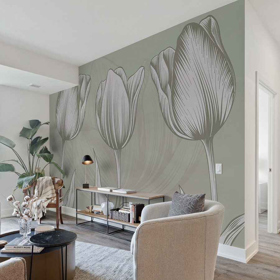 Transformați orice perete într-o gură de aer proaspăt cu această minunată pictură murală care prezintă o linie de flori pe un fundal verde blând. Imaginați-vă pășind într-o grădină liniștită, fără albinele enervante! Aceste flori frumos schițate adaugă o notă de eleganță și fantezie spațiului dumneavoastră. Imaginați-vă sorbind o cafea lângă perete, pierduți în gânduri, în timp ce culorile liniștitoare vă înconjoară ca o îmbrățișare caldă. Este ca și cum ai avea natura în interior, fără noroiul de pe pantofi. Perfect pentru sufragerii, dormitoare sau acel hol incomod. Ia-ți adio de la pereții terni și salută o evadare florală!