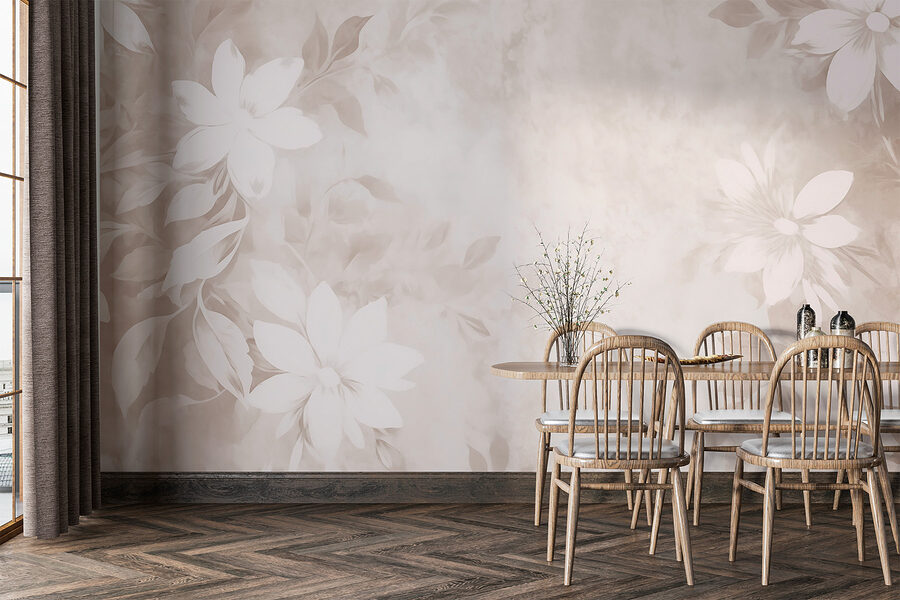 Transformați orice cameră cu această pictură murală fermecătoare cu un model floral alb și gri care se simte ca o briză blândă de primăvară. Imaginați-vă că pășiți într-un spațiu în care bujorii moi și trandafirii înfloriți dansează pe pereți, invitând la căldură și seninătate. Perfectă pentru un living confortabil sau un dormitor senin, această pictură murală adaugă atingerea potrivită de eleganță. Este ca și cum ai avea o grădină secretă în interior – fără gândaci, desigur! Culorile subtile creează o atmosferă liniștitoare, fiind un fundal ideal pentru seri relaxante sau întâlniri vesele. Pereții dvs. vă vor mulțumi!