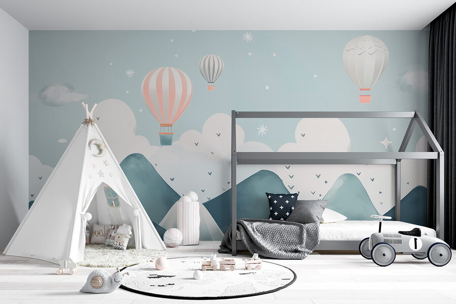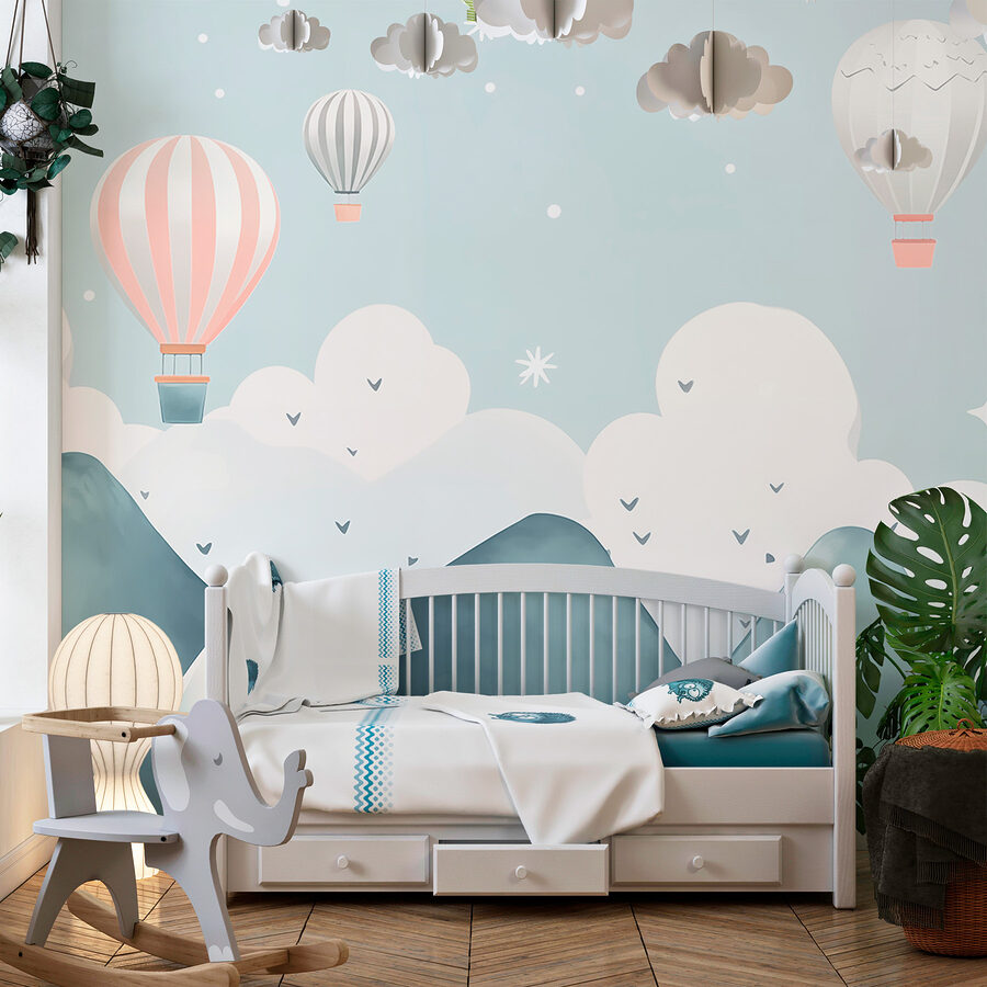 Înălțați-vă spațiul cu această pictură murală încântătoare cu baloane cu aer cald plutind grațios peste munți de vis. Imaginați-vă că vă treziți în fiecare zi în fața acestei scene senine – este ca și cum ați păși într-o pictură în acuarelă! Albastrul blând și culorile blânde invită la un sentiment de calm, făcând-o perfectă pentru un living confortabil sau un dormitor liniștit. Imaginați-vă duminici leneșe cu o ceașcă de cafea, cu lumina zilei pătrunzând prin ea, în timp ce visați cu ochii deschiși că plutiți printre nori. Adăugați o notă de fantezie pereților dvs. – s-ar putea să vă inspire ceva aventură în timpul zilei! Cine știe, poate chiar și peretele va începe să vă șoptească dulci planuri de evadare.
