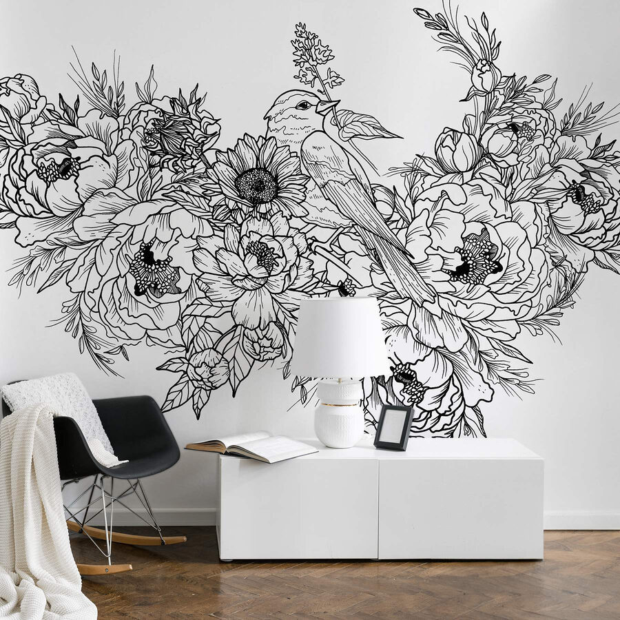Transformați orice spațiu cu această pictură murală vibrantă cu o pasăre fermecătoare cuibărită printre flori înflorite. Este ca și cum ai aduce o bucată de natură chiar în sufrageria ta. Imaginați-vă sorbind cafea, privind această scenă încântătoare, simțindu-vă puțin mai ușor, ca și cum primăvara a decis să se stabilească permanent pe peretele dvs.