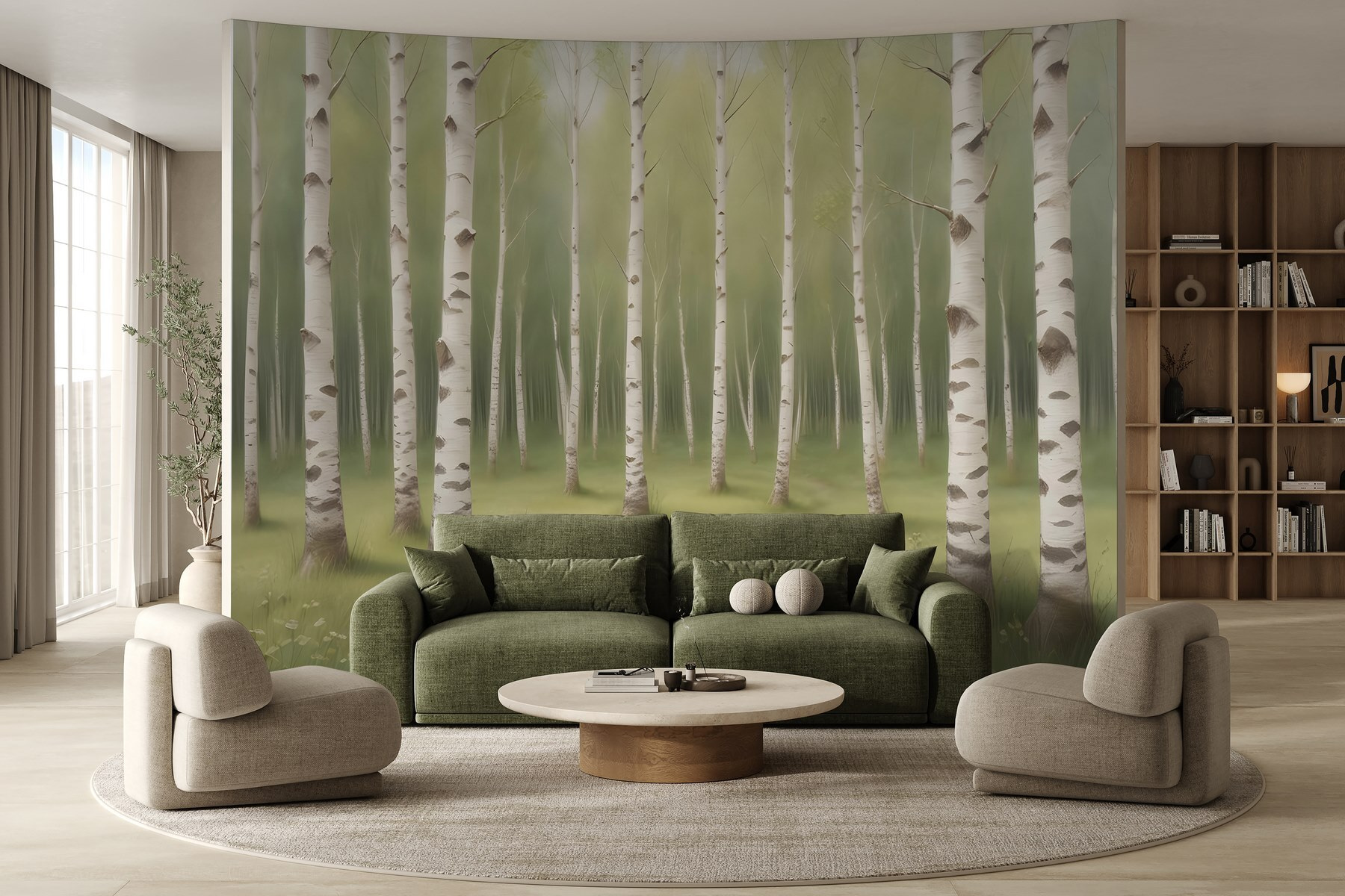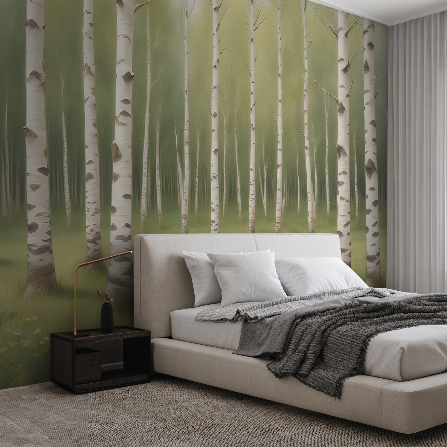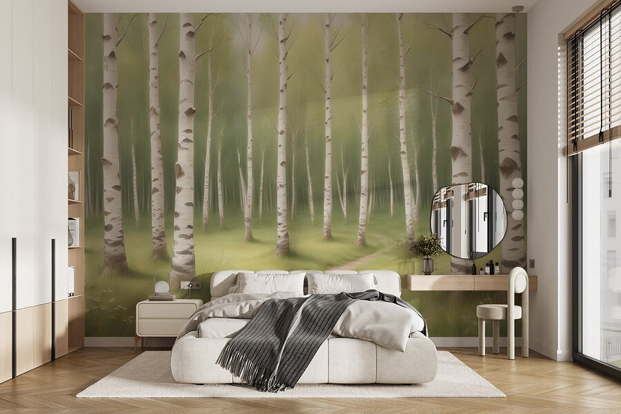 Transformați orice cameră cu pictura murală încântătoare “Path through a Forest”. Imaginați-vă că pășiți într-o pădure senină, unde lumina blândă a soarelui trece printre mesteceni și o briză ușoară șoptește promisiuni de aventură. Este ca și cum ai avea o felie de natură chiar pe pereții tăi. Perfectă pentru o cameră de zi sau un colț confortabil, verdele și albul liniștitor al acestei picturi murale invită la pace. Imaginează-ți că te relaxezi cu o carte, transportat într-o escapadă liniștită fără să ieși din casă. În plus, este un fundal excelent pentru selfie-urile cu plantele de interior, extrem de importante. Cine ar fi crezut că decorarea poate fi atât de revigorantă?
