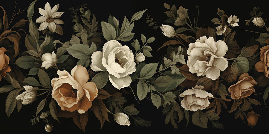 Transformați-vă spațiul cu această pictură murală florală elegantă, în care florile bogate dansează pe un fundal întunecat. Este ca și cum ai aduce o grădină secretă în interior, fără pantofii murdari de noroi! Imaginați-vă că vă treziți în aceste culori liniștitoare, sorbindu-vă cafeaua de dimineață în timp ce lumea de afară se grăbește să treacă. Petalele și frunzele detaliate invită la o atingere a naturii, creând o atmosferă senină, perfectă pentru relaxare sau creativitate. În plus, prietenii vor dori cu siguranță să știe unde ați găsit o astfel de piesă uimitoare – pregătiți-vă pentru complimente serioase! Nu este doar decor; este o vibrație, o stare de spirit și o mică amintire a frumuseții în viața de zi cu zi.