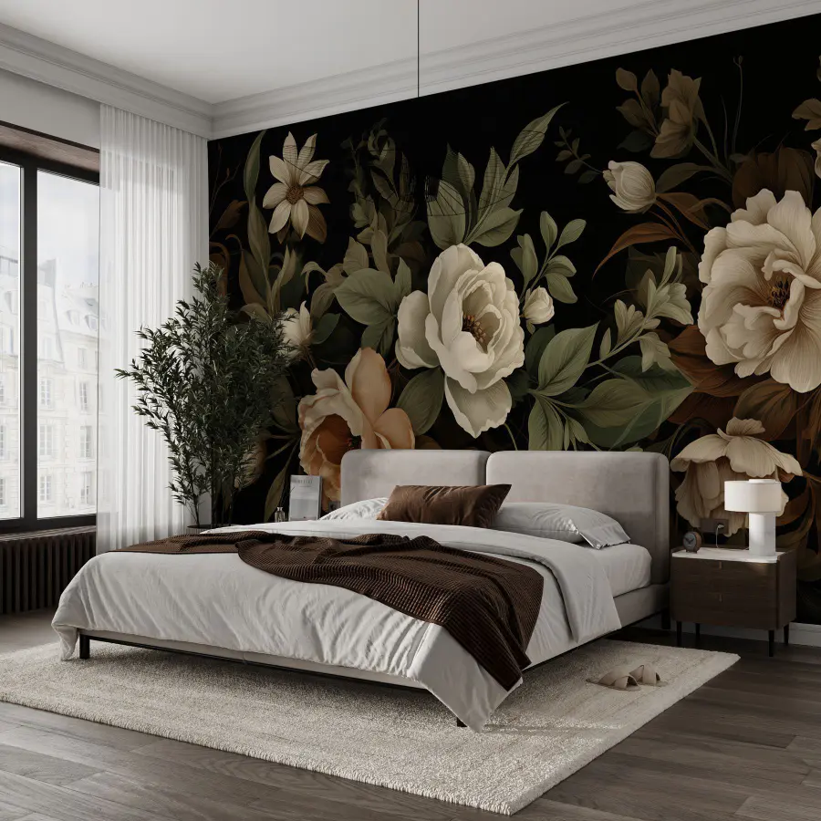 Transformați-vă spațiul cu această pictură murală florală elegantă, în care florile bogate dansează pe un fundal întunecat. Este ca și cum ai aduce o grădină secretă în interior, fără pantofii murdari de noroi! Imaginați-vă că vă treziți în aceste culori liniștitoare, sorbindu-vă cafeaua de dimineață în timp ce lumea de afară se grăbește să treacă. Petalele și frunzele detaliate invită la o atingere a naturii, creând o atmosferă senină, perfectă pentru relaxare sau creativitate. În plus, prietenii vor dori cu siguranță să știe unde ați găsit o astfel de piesă uimitoare – pregătiți-vă pentru complimente serioase! Nu este doar decor; este o vibrație, o stare de spirit și o mică amintire a frumuseții în viața de zi cu zi.