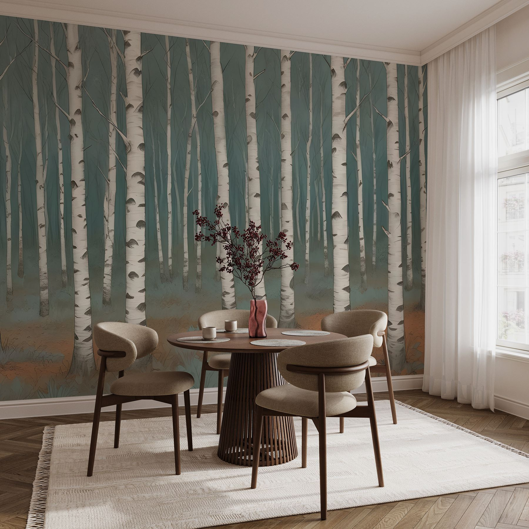 Pășiți într-o pădure senină de fiecare dată când vă uitați la acest perete mural uimitor. Dispunând de o livadă de mesteceni eleganți, acesta aduce vibrația pașnică a naturii chiar în casa dvs. Imaginați-vă că vă relaxați cu o carte bună, simțindu-vă ca și cum v-ați cuibărit într-un refugiu confortabil din pădure. Culorile suave creează o atmosferă liniștitoare, perfectă pentru transformarea oricărui spațiu – de la un living la un colț de meditație.