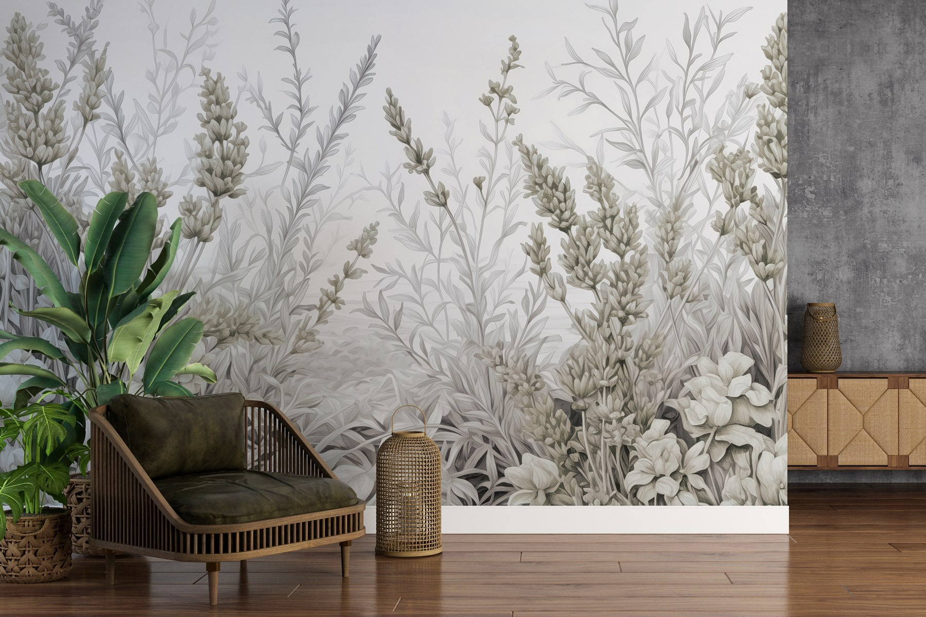 Transformați orice spațiu într-o evadare liniștită cu această pictură murală uimitoare. Prezentând un aranjament botanic senin, acesta șoptește eleganță în tonuri discrete, aducând o notă de natură în interior. Imaginați-vă că veniți acasă după o zi lungă, vă așezați pe canapea și sunteți întâmpinați de levănțică moale și verdeață delicată. Este ca o îmbrățișare liniștitoare pentru pereții dvs. Perfectă pentru un colț de lectură confortabil sau un dormitor liniștit, această pictură murală creează o atmosferă de relaxare. Gândiți-vă că nu necesită udare sau tăiere! Adăugați un strop de zen decorului dvs. și lăsați pereții să vorbească.