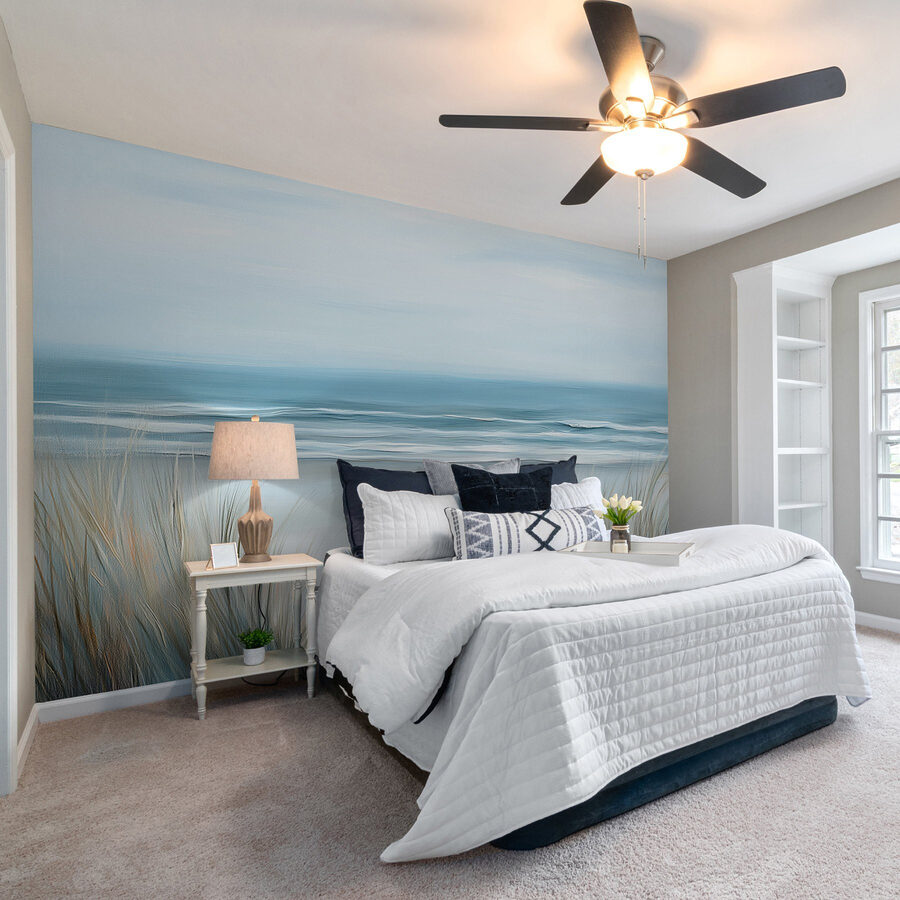 Imaginați-vă că pășiți într-o cameră în care simțiți că tocmai a intrat o briză blândă de pe malul mării. Această pictură murală, “Plajă cu iarbă și valuri”, face exact asta. Ea surprinde frumusețea senină a coastei, cu culori blânde care șoptesc relaxare. Imaginați-vă petrecând după-amieze leneșe doar privind valurile, simțindu-vă grijile îndepărtate ca urmele de pași în nisip. Ierburile delicate se leagănă ca și cum v-ar invita la o plimbare de-a lungul țărmului. Este o atingere perfectă pentru un colț de lectură confortabil sau o zonă de luat masa luminoasă – unde un pic de vibrații de plajă poate transforma orice zi într-o mini-vacanță. Perfect pentru visători și iubitori de plajă deopotrivă!