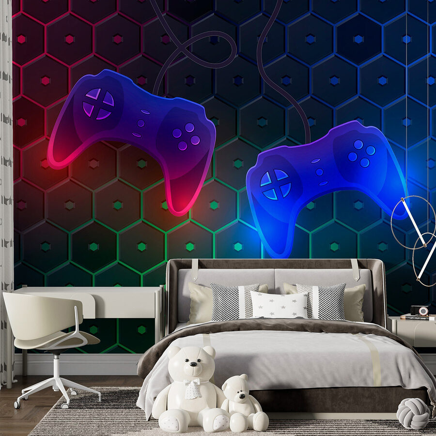 Transformați-vă spațiul cu o explozie de creativitate! Această pictură murală hipnotizantă, cu controlere de jocuri vibrante pe un fundal hexagonal, este ca o invitație jucăușă de a pătrunde în lumea jocurilor. Imaginați-vă ieșind cu prietenii, râsetele răsunând în timp ce vă provocați reciproc, totul sub strălucirea acestor controlere colorate. Nu este doar decor; este o vibrație – un starter de conversație distractiv care aduce energie în orice cameră. Amestecul de culori îndrăznețe și modele geometrice adaugă o notă modernă care menține lucrurile proaspete. Perfect pentru peșterile gamerilor, camerele copiilor sau orice spațiu care tânjește după un strop de personalitate. Vă veți trezi zâmbind de fiecare dată când treceți pe acolo – este aproape ca și cum pictura murală vă provoacă la revanșă!