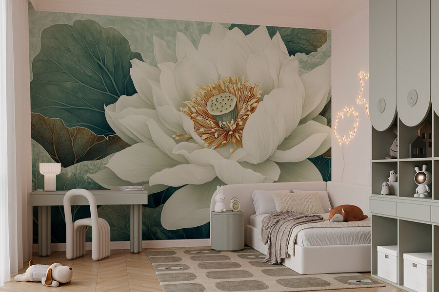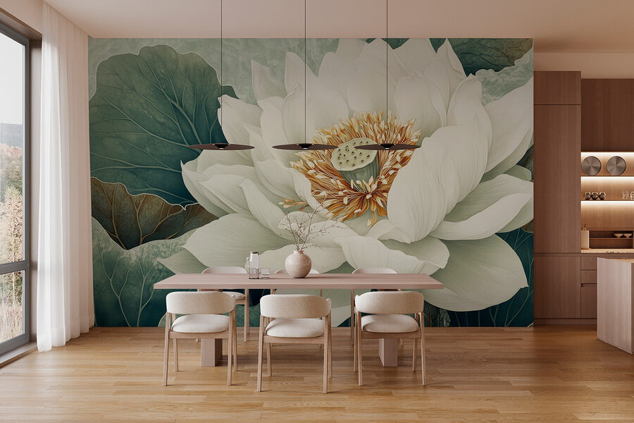 Transformați-vă spațiul cu această pictură murală captivantă, “Floare albă cu frunze verzi”. Imaginați-vă intrând într-o cameră în care o floare uimitoare pare să insufle viață și lumină. Detaliile complicate sunt ca o șoaptă a naturii, invitând la calm și seninătate. Această pictură murală nu este doar decor; este o stare de spirit! Imaginați-vă că vă relaxați cu o carte bună, iar verdele și albul blând vă învăluie ca o pătură confortabilă. Prietenii trec pe aici și rămân cu gura căscată – este genul acela de magie. Perfect pentru a adăuga o notă de eleganță; este ca și cum ai aduce o grădină în interior, fără alergii. Răcoritoare, atemporală și atât de fermecătoare!