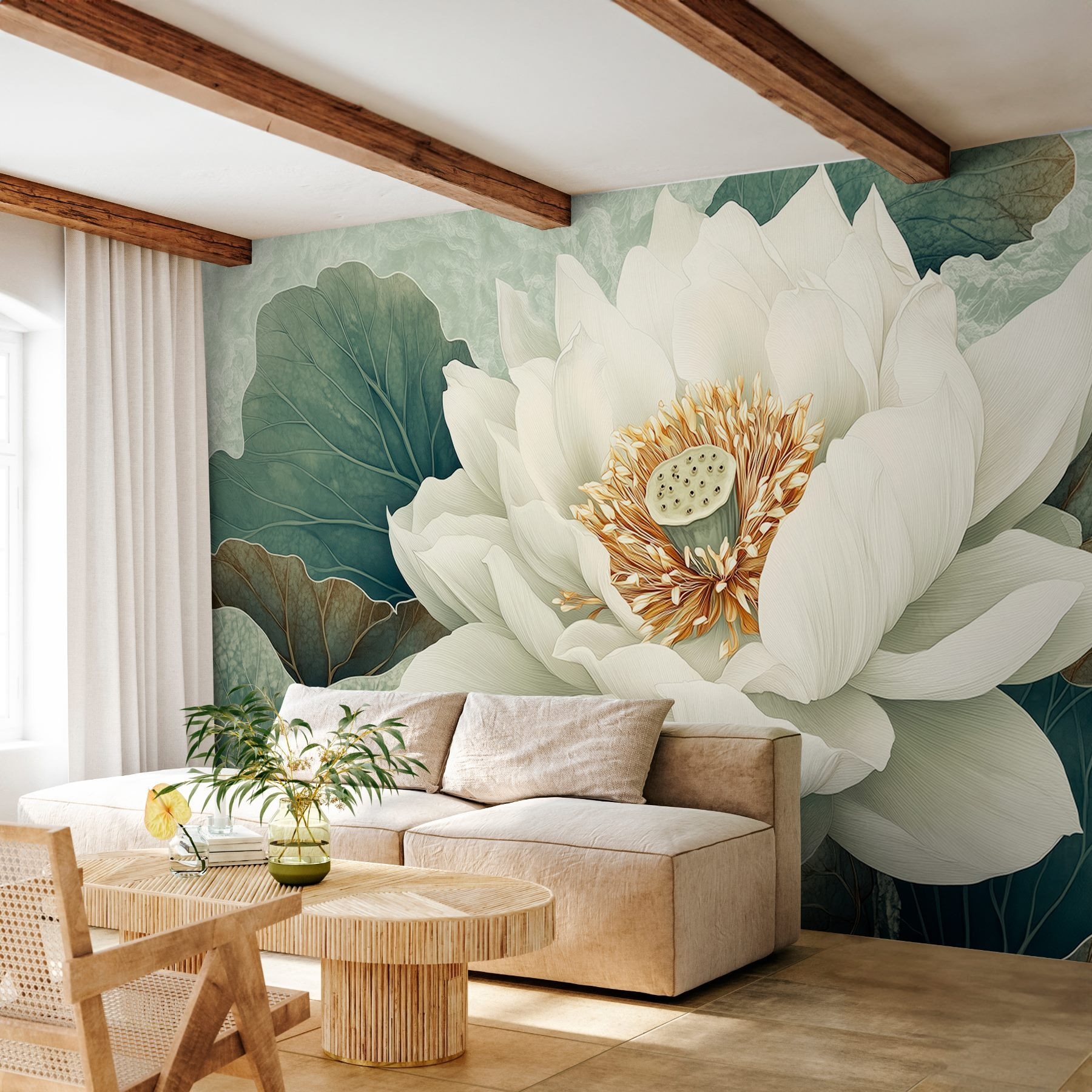 Transformați-vă spațiul cu această pictură murală captivantă, “Floare albă cu frunze verzi”. Imaginați-vă intrând într-o cameră în care o floare uimitoare pare să insufle viață și lumină. Detaliile complicate sunt ca o șoaptă a naturii, invitând la calm și seninătate. Această pictură murală nu este doar decor; este o stare de spirit! Imaginați-vă că vă relaxați cu o carte bună, iar verdele și albul blând vă învăluie ca o pătură confortabilă. Prietenii trec pe aici și rămân cu gura căscată – este genul acela de magie. Perfect pentru a adăuga o notă de eleganță; este ca și cum ai aduce o grădină în interior, fără alergii. Răcoritoare, atemporală și atât de fermecătoare!