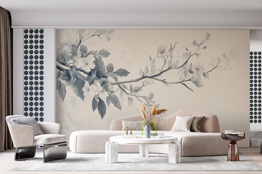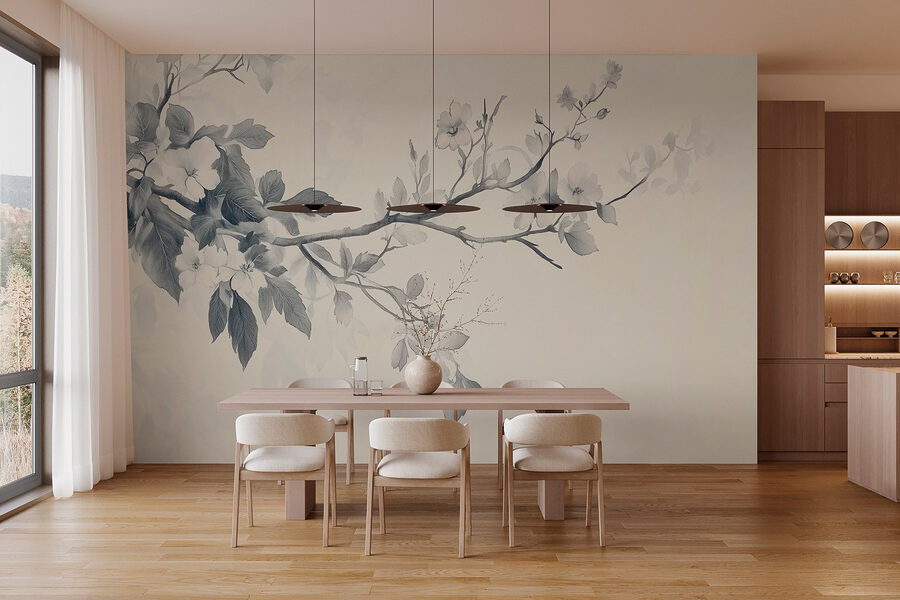 Transformați-vă spațiul cu această pictură murală încântătoare, “Creangă cu flori și frunze”. Imaginați-vă că vă plimbați printr-o grădină japoneză senină chiar în camera dvs. de zi – încântător, nu-i așa? Florile delicate și frunzele complicate plutesc pe perete, dând o notă de liniște la fel de răcoritoare ca o briză matinală. Este ca o operă de artă a naturii, luminând fără efort orice colț plictisitor. Perfect pentru a visa cu ochii deschiși sau pentru serile confortabile, invită la căldură și relaxare. Fiecare privire vă poate trezi amintirea unei plimbări minunate prin grădină sau a acelei perioade în care ați pierdut noțiunea timpului admirând florile. Vorbim despre o mică oază!