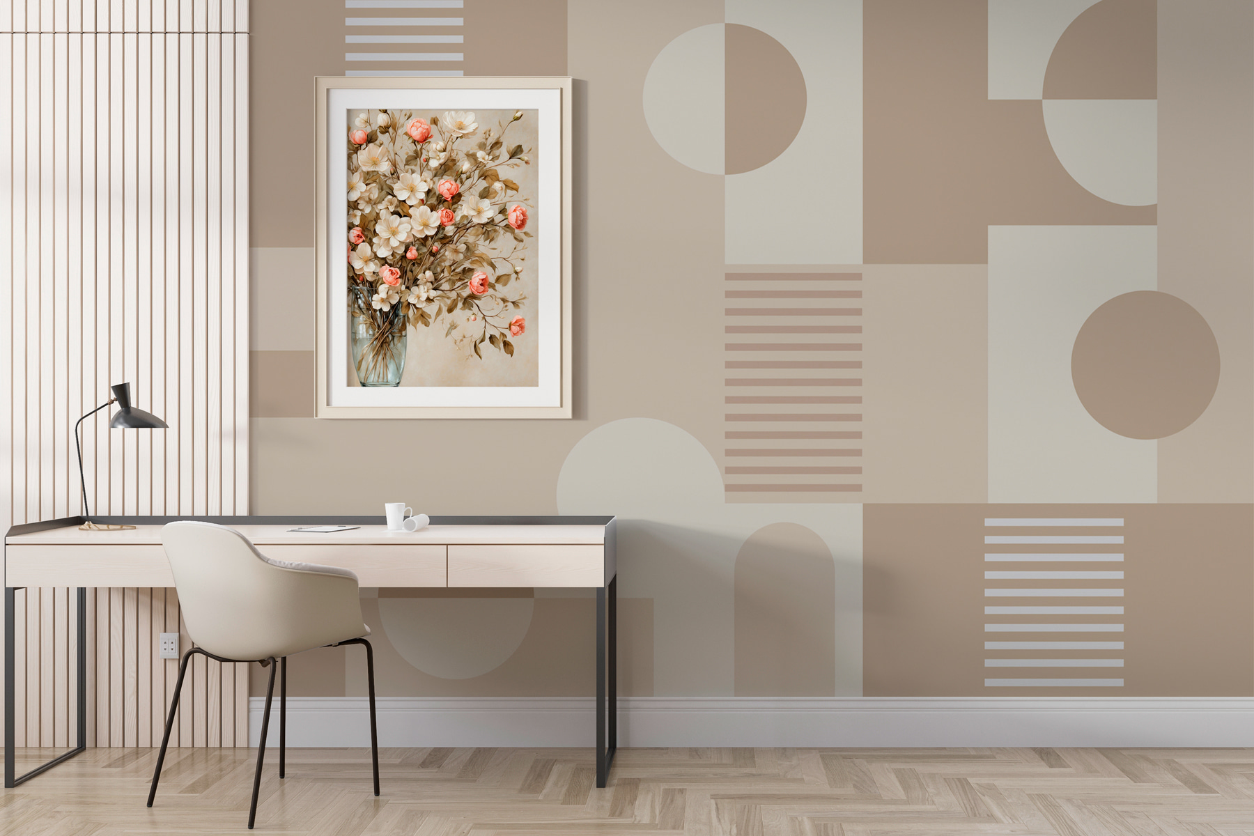 Transformați orice cameră într-un paradis confortabil cu acest “Fototapet Pattern of Geometric Shapes”. Imaginați-vă că vă treziți în fiecare dimineață cu tonuri moi, neutre, dansând pe pereți – atât de liniștitor, încât s-ar putea să uitați că sunteți treaz. Amestecul jucăuș de dreptunghiuri și cercuri poate stârni bucurie chiar și în cele mai mohorâte spații, cum ar fi acel colț pe care l-ați ignorat încă din septembrie anul trecut.