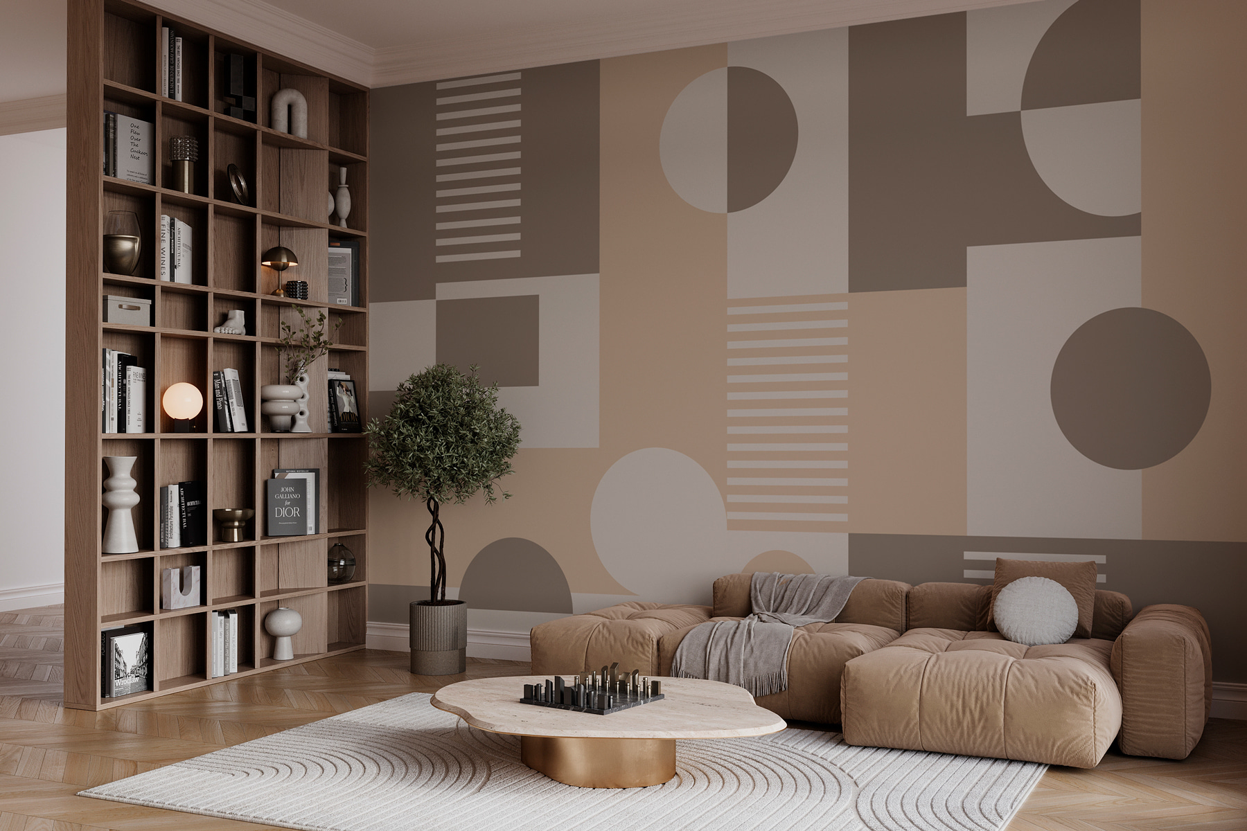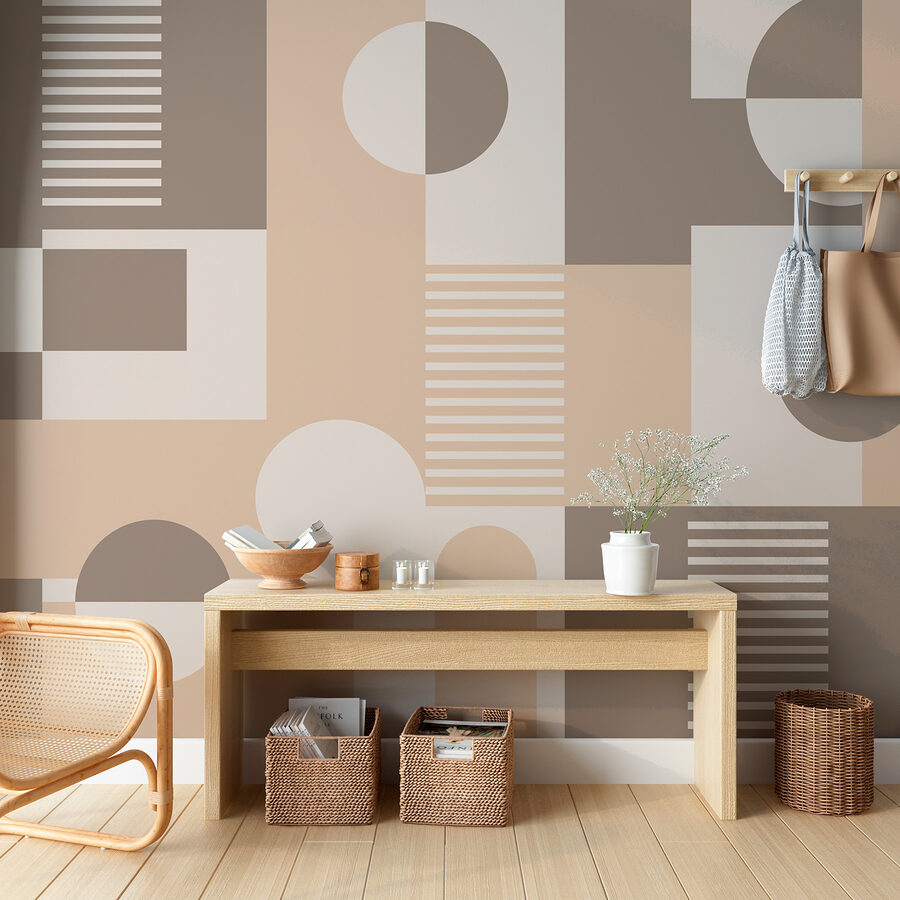 Transformați orice cameră cu această pictură murală elegantă cu un amestec jucăuș de forme geometrice. Tonurile blânde, pământii, creează o atmosferă liniștitoare, perfectă pentru serile relaxante sau adunările vesele. Imaginați-vă sorbind cafea în timp ce lumina dansează pe aceste linii clare, făcând spațiul să pară viu. Fiecare formă pare să spună o mică poveste – de unde provine acel cerc? Este o lună? O farfurie confortabilă pentru micul dejun? Perfect pentru camera de zi sau biroul de acasă, acesta stimulează creativitatea fără a copleși simțurile. Este ca și cum ai avea o operă de artă modernă, dar mult mai ușor de agățat!