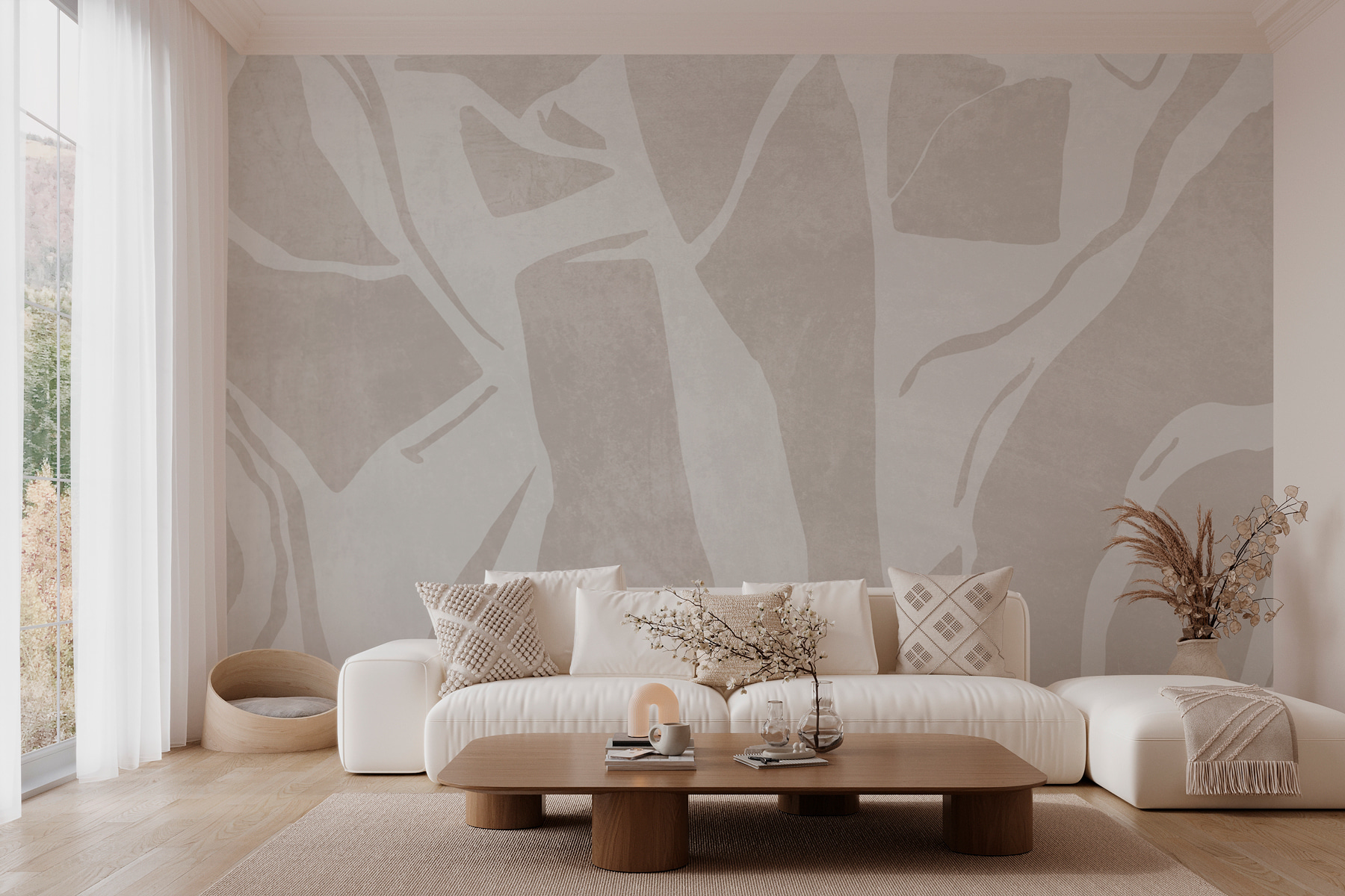 Transformarea unui spațiu cu această pictură murală seamănă cu o îmbrățișare confortabilă a pereților. Imaginați-vă-o: un fundal ușor și aerisit de alb și gri, drapat cu linii elegante care curg și dansează. Este modern, dar atemporal – perfect pentru acea cameră în care creativitatea și confortul se întâlnesc. Imaginați-vă sorbind cafeaua într-o rază de soare, texturile moi ale spațiului dvs. insuflând viață duminicilor leneșe. Această pictură murală nu este doar un decor; este un creator de atmosferă. În plus, evitați pereții bej plictisitori; pereții dvs. merită puțină personalitate! Este ca arta plastică, dar pentru viața de zi cu zi – puțină dramă fără agitație.