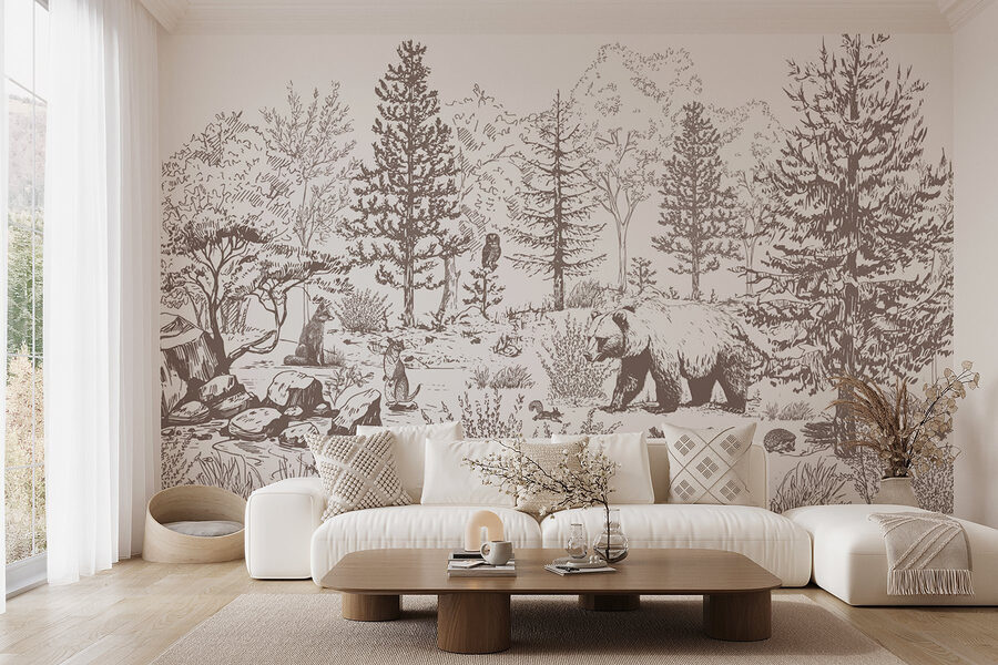 Transformați-vă spațiul într-un refugiu confortabil în pădure cu pictura murală “Ursul se plimbă prin pădure”. Imaginați-vă sorbindu-vă cafeaua de dimineață în timp ce acest urs maiestuos se plimbă printr-o pădure senină, plină de creaturi jucăușe și copaci șoptitori. Este ca și cum ai avea natura chiar în sufrageria ta, mai puțin țânțarii! Această pictură murală adaugă o notă de aventură și calm, stârnind visuri cu ochii deschiși despre drumeții prin pădure și seri lângă focul de tabără. Perfect pentru iubitorii de natură sau pentru oricine dorește să scape de agitația cotidiană. Deci, de ce să nu vă dezlănțuiți exploratorul interior? Pereții tăi merită să respire puțină magie!
