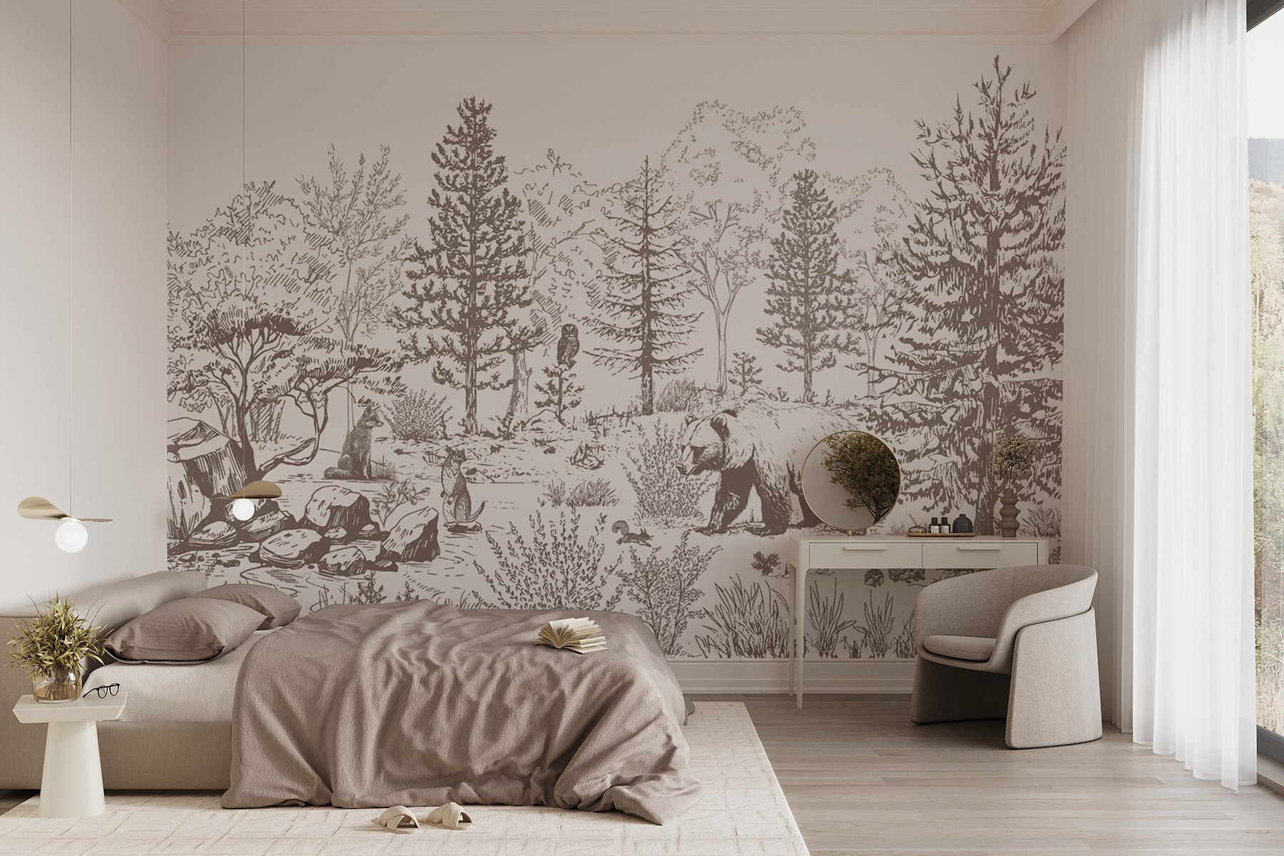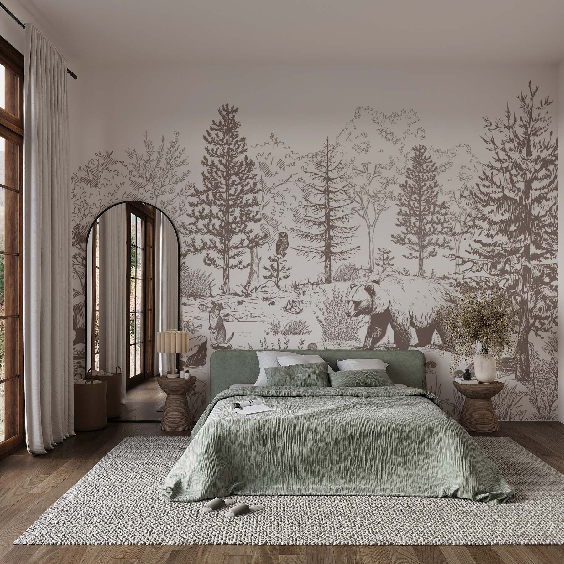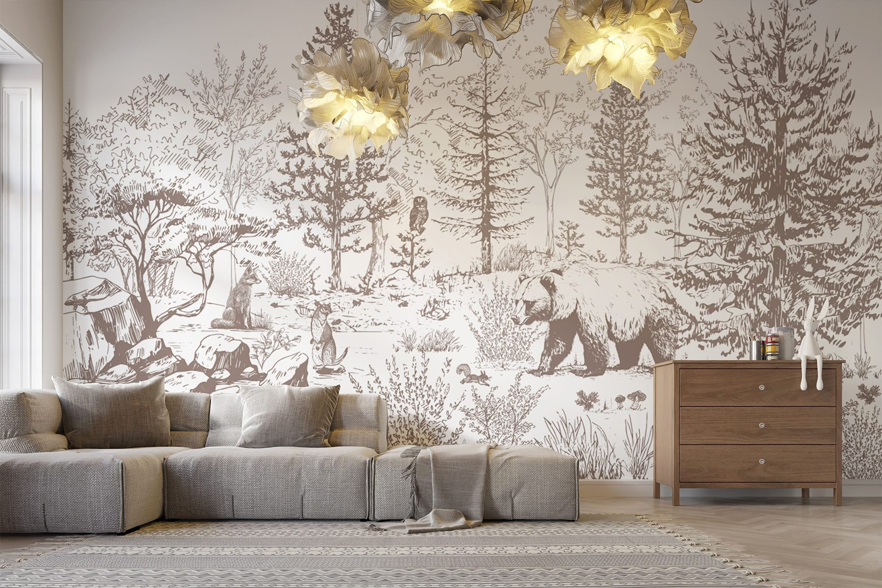 Transformați-vă spațiul într-un refugiu confortabil în pădure cu pictura murală “Ursul se plimbă prin pădure”. Imaginați-vă sorbindu-vă cafeaua de dimineață în timp ce acest urs maiestuos se plimbă printr-o pădure senină, plină de creaturi jucăușe și copaci șoptitori. Este ca și cum ai avea natura chiar în sufrageria ta, mai puțin țânțarii! Această pictură murală adaugă o notă de aventură și calm, stârnind visuri cu ochii deschiși despre drumeții prin pădure și seri lângă focul de tabără. Perfect pentru iubitorii de natură sau pentru oricine dorește să scape de agitația cotidiană. Deci, de ce să nu vă dezlănțuiți exploratorul interior? Pereții tăi merită să respire puțină magie!