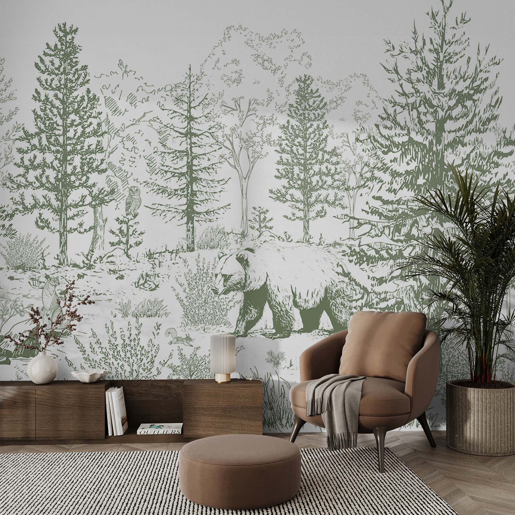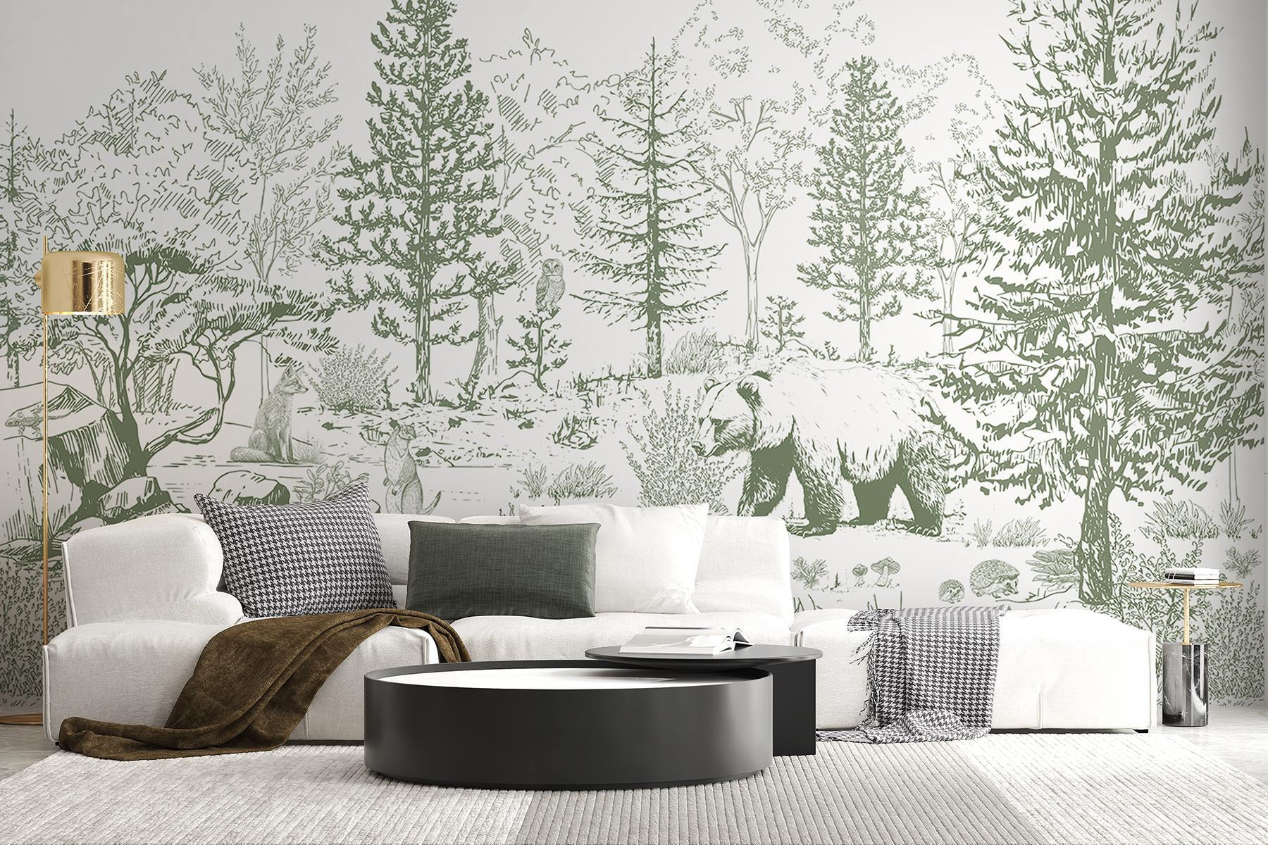 Imaginați-vă că pășiți într-o cabană confortabilă, unde calmul pădurii vă învăluie ca o îmbrățișare caldă. Această pictură murală, care înfățișează un urs care se plimbă prin verdeață, aduce acest sentiment în spațiul dvs. Liniile moi și tonurile pământii creează o atmosferă primitoare, perfectă pentru a visa cu ochii deschiși sau pentru discuții confortabile. Este ca și cum ursul ar putea să se uite pe fereastra dvs. într-o zi, gata să împărtășească povești din pădure. Transformați orice cameră într-un refugiu în natură – ideal pentru camera de zi sau dormitor, unde relaxarea se întâlnește cu aventura. Așadar, luați ceașca de ceai și lăsați această pictură murală să vă inspire dorința de a călători chiar acasă.