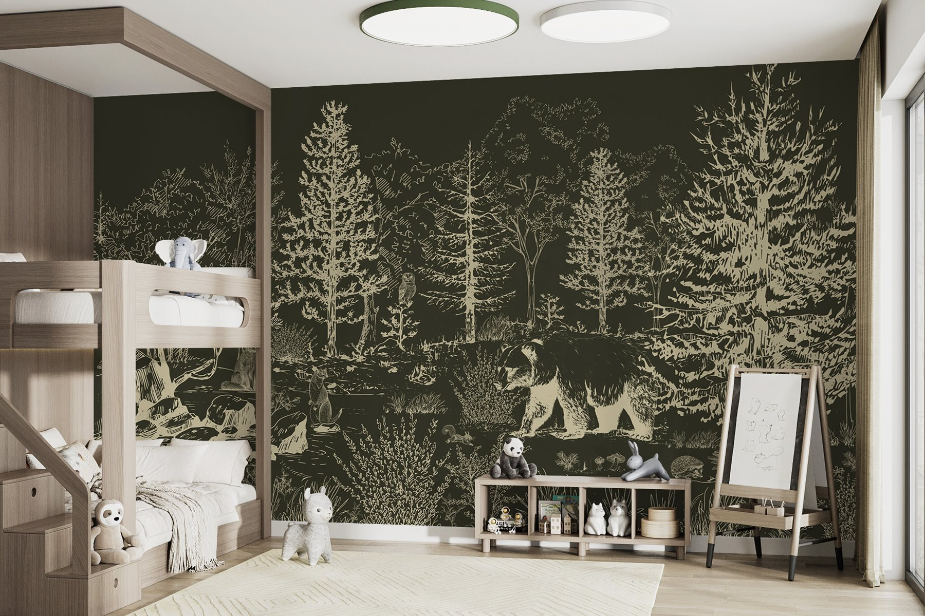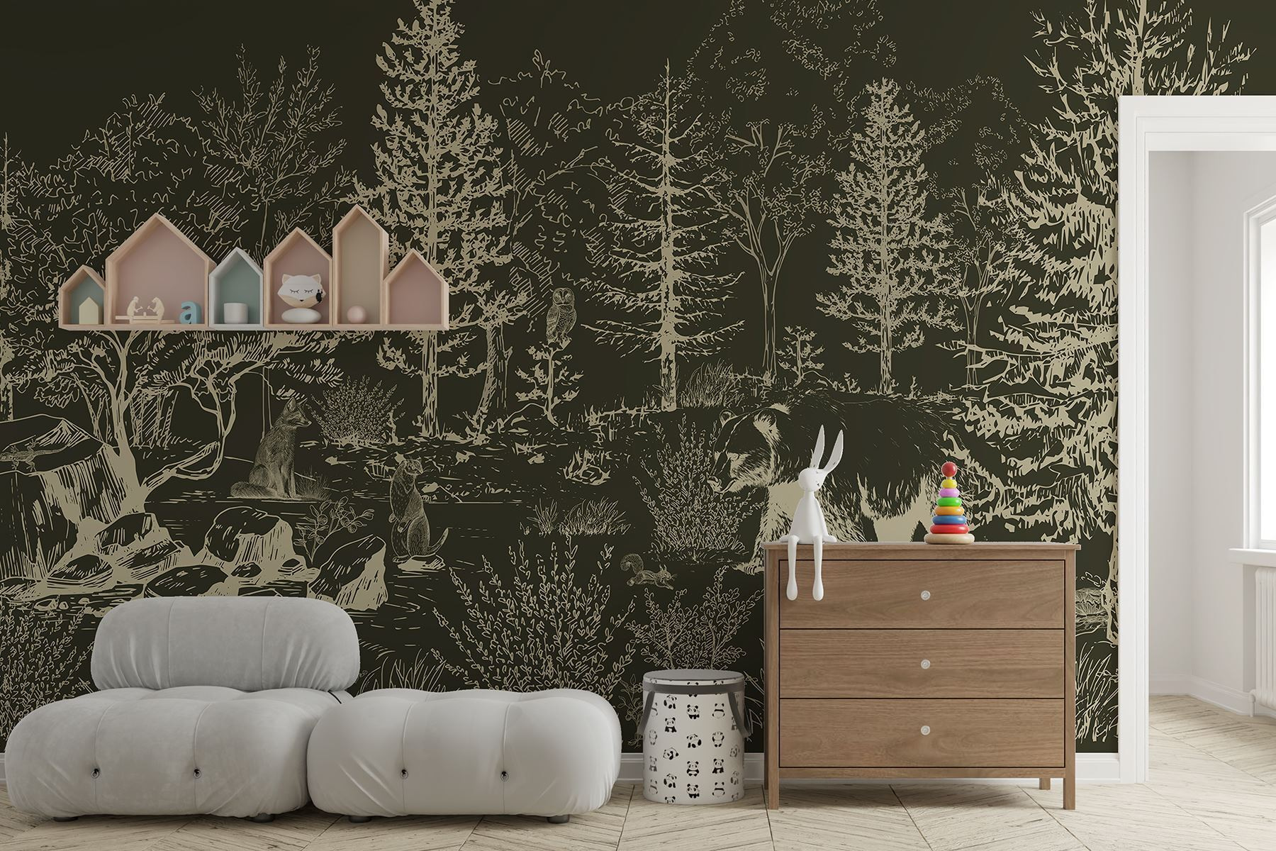 Transformați-vă spațiul într-o escapadă confortabilă în pădure cu pictura murală “Ursul se plimbă prin pădure”. Imaginați-vă foșnetul blând al frunzelor sub picioare în timp ce vă așezați în fotoliul dvs. preferat, sorbind ceai în timp ce admirați un urs prietenos care se plimbă întâmplător. Această pictură murală nu este doar o decorațiune; este un portal către calmul naturii. Perfectă pentru o cameră de zi sau un colț de lectură, vă invită să respirați adânc și să îmbrățișați viața în aer liber – fără insecte! Lăsați pereții dvs. să spună o poveste, oferind o atmosferă caldă, rustică, care face ca fiecare zi să se simtă ca o aventură în natură.
