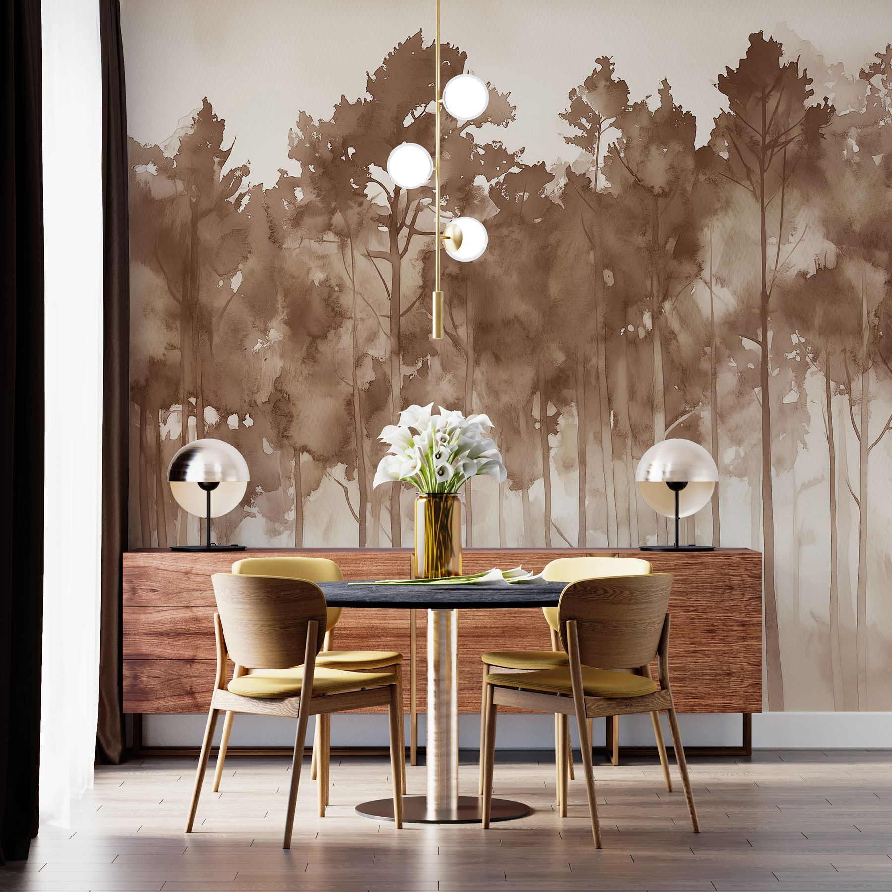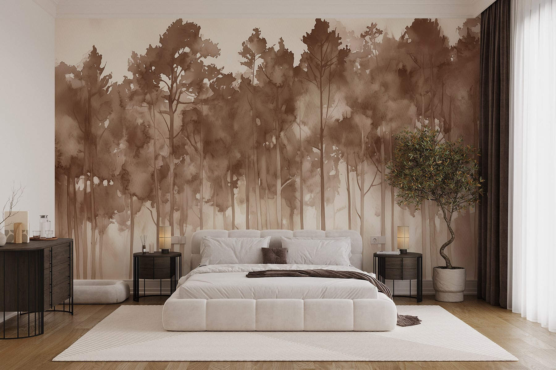 Transformați un perete într-o evadare senină cu acest mural “Grup de copaci într-o pădure cețoasă”. Imaginați-vă că pășiți într-o pădure de vis de fiecare dată când intrați în cameră. Nuanțele blânde de acuarelă creează o atmosferă liniștitoare care doar șoptește liniște. Este ca și cum natura v-ar îmbrățișa într-o îmbrățișare confortabilă, fără insectele enervante!