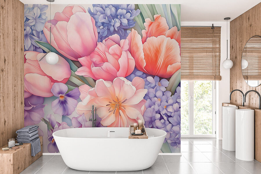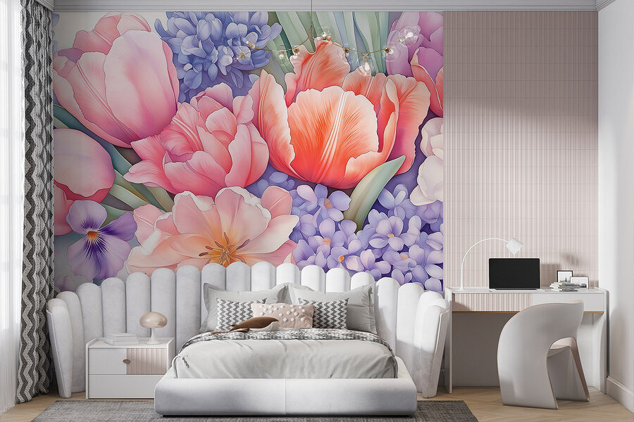 Transformați-vă spațiul cu această murală uimitoare, “Grup de flori pe un fundal alb”. Este ca o explozie florală care nu se ofilește niciodată! Imaginați-vă că intrați într-o cameră în care lalele vibrante, panseluțe delicate și liliac luxuriant înfloresc chiar în fața ochilor dumneavoastră. Culorile apar ca într-o zi însorită, ridicând instantaneu starea de spirit. Este perfect pentru acel colțișor confortabil unde vă așteaptă o carte bună și o ceașcă de ceai sau chiar ca un fundal plin de viață pentru o întâlnire cu prietenii. Imaginați-vă: toată lumea zâmbește și aproape că puteți auzi florile șoptindu-vă secretele primăverii. O atingere simplă, dar care insuflă viață în orice colț. Cine nu și-ar dori să se trezească la această explozie a naturii? Adaugă un strop de bucurie florală și privește cum înflorește spațiul tău!
