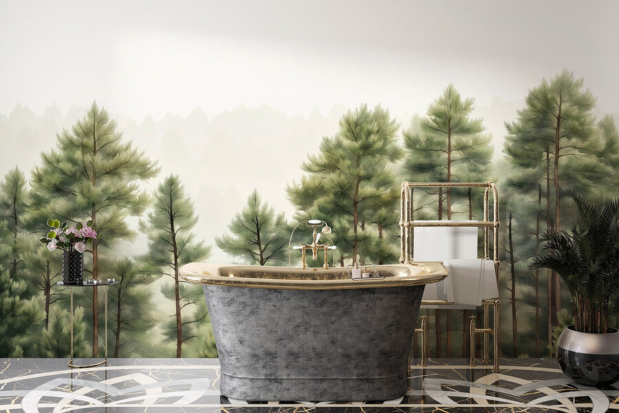 Transformați-vă spațiul cu această murală uimitoare, “Grup de copaci într-o pădure”. Imaginați-vă acest lucru: în fiecare dimineață, vă treziți într-o pădure senină chiar în casa dvs. Imaginați-vă efectele calmante – ca o îmbrățișare confortabilă din partea naturii însăși. Verdele moale și ceața blândă vă atrag înăuntru, invitându-vă la un sentiment de pace și liniște. Este ca și cum ai avea propria ta felie de aer liber, fără gândaci și noroi. Perfect pentru a crea un colț de lectură confortabil sau un perete de accent răcoritor. Cine are nevoie de o vacanță când puteți aduce frumusețea pădurii în interior? Adăugați o atingere a farmecului naturii și pregătiți-vă să inspirați visarea cu ochii deschiși.