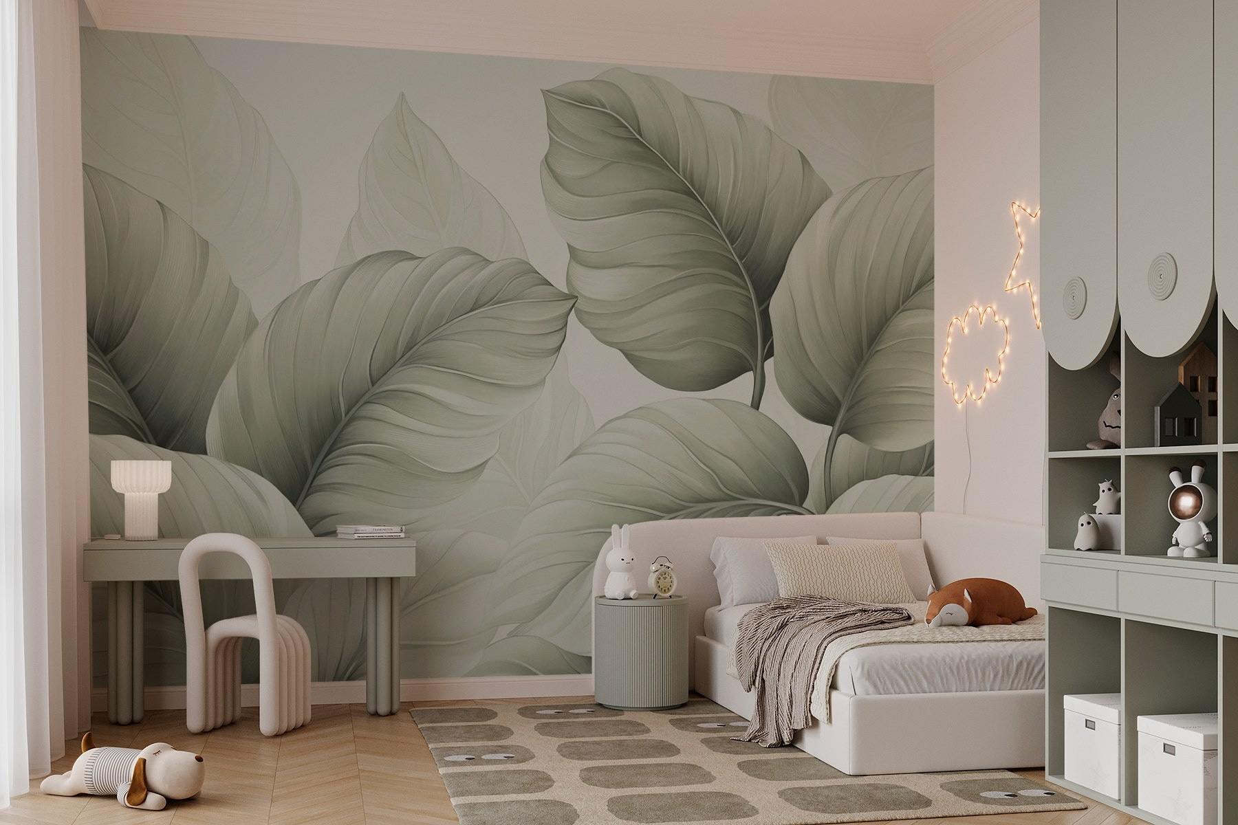Transformați acel perete simplu într-o escapadă luxuriantă cu pictura murală “Lush Leaves in Soft Green Tones”. Imaginați-vă că intrați în spațiul dvs. și vă simțiți ca și cum ați păși într-o junglă senină, fără țânțari, desigur. Aceste frunze frumos proiectate adaugă un vibe proaspăt și liniștitor – perfect pentru colțuri confortabile sau chiar pentru acea zonă de luat masa goală care cere ceva special. Imaginați-vă cum vă așezați în fotoliul preferat cu o ceașcă de ceai, înconjurați de această frumusețe înverzită. Este ca o îmbrățișare a naturii, care vă învăluie în liniște în fiecare zi. Această pictură murală nu doar decorează; ridică spiritele și stârnește zâmbete, transformând orice cameră într-un paradis inspirat de natură.