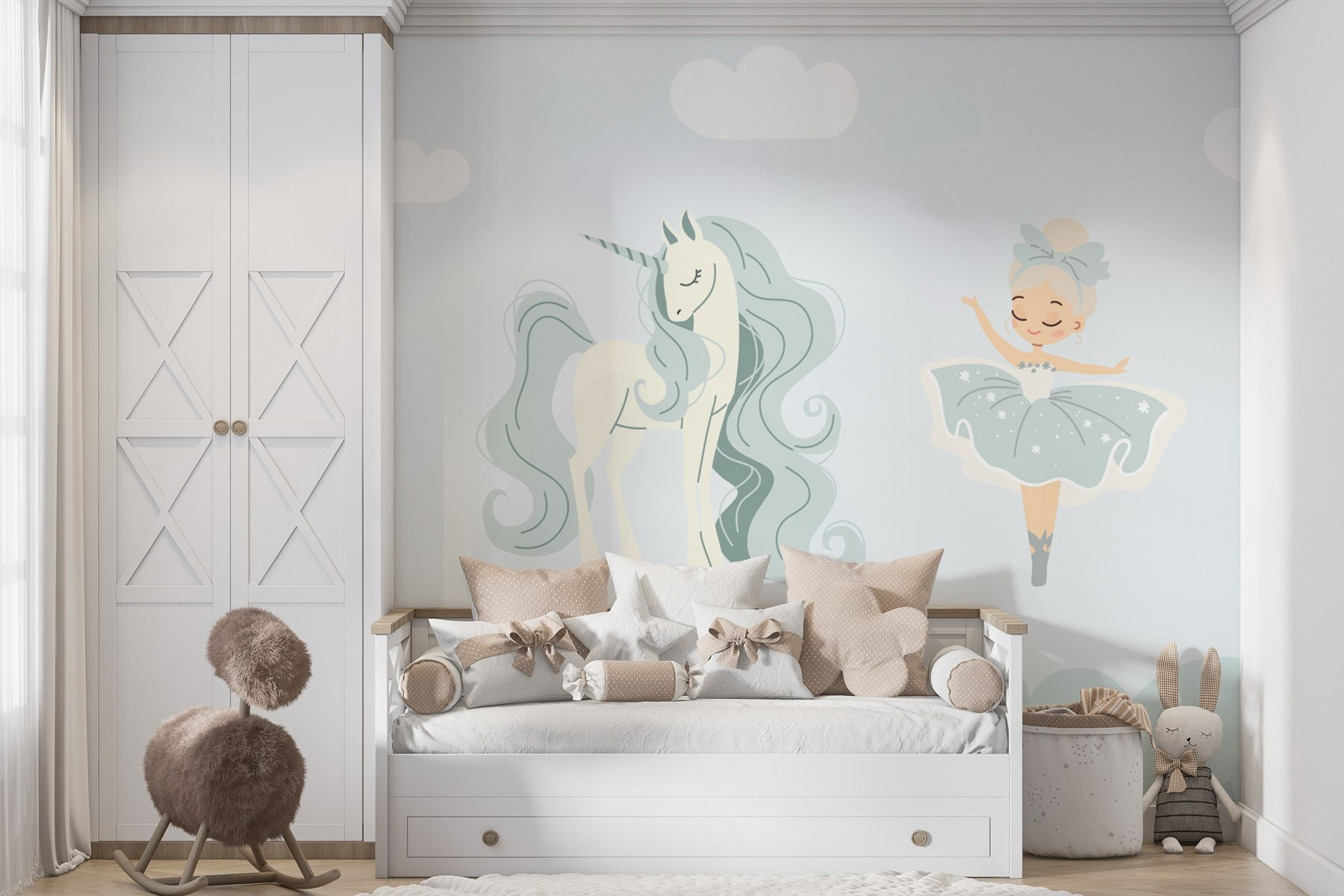 Imaginați-vă că intrați într-o cameră care se simte ca un vis cu ochii deschiși – acest “Fototapet Cartoon of a Girl and a Unicorn” face exact asta! Cu culori blânde și personaje dulci, acesta transformă orice spațiu într-un paradis jucăuș. Imaginați-vă o fetiță curioasă învârtindu-se, prefăcându-se că dansează cu prietenul ei unicorn. Detaliile încântătoare vor stârni chicoteli și vor alimenta imaginația sălbatică. În plus, cui nu-i place o evadare magică din cotidian? Este ca și cum ai aduce un strop de praf de zână chiar în casa ta – fermecător, nu-i așa? Perfect pentru a înveseli grădinițele sau camerele de joacă – dacă doar camerele adulților ar putea avea și ele unicorni!