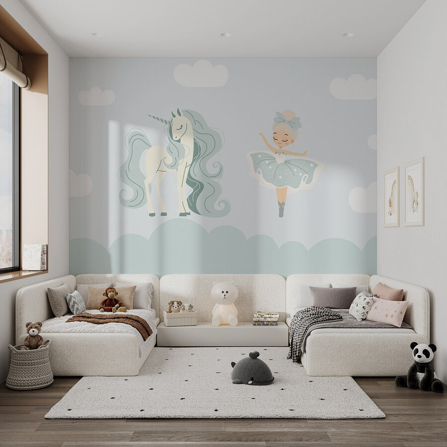 Imaginați-vă că intrați într-o cameră care se simte ca un vis cu ochii deschiși – acest “Fototapet Cartoon of a Girl and a Unicorn” face exact asta! Cu culori blânde și personaje dulci, acesta transformă orice spațiu într-un paradis jucăuș. Imaginați-vă o fetiță curioasă învârtindu-se, prefăcându-se că dansează cu prietenul ei unicorn. Detaliile încântătoare vor stârni chicoteli și vor alimenta imaginația sălbatică. În plus, cui nu-i place o evadare magică din cotidian? Este ca și cum ai aduce un strop de praf de zână chiar în casa ta – fermecător, nu-i așa? Perfect pentru a înveseli grădinițele sau camerele de joacă – dacă doar camerele adulților ar putea avea și ele unicorni!