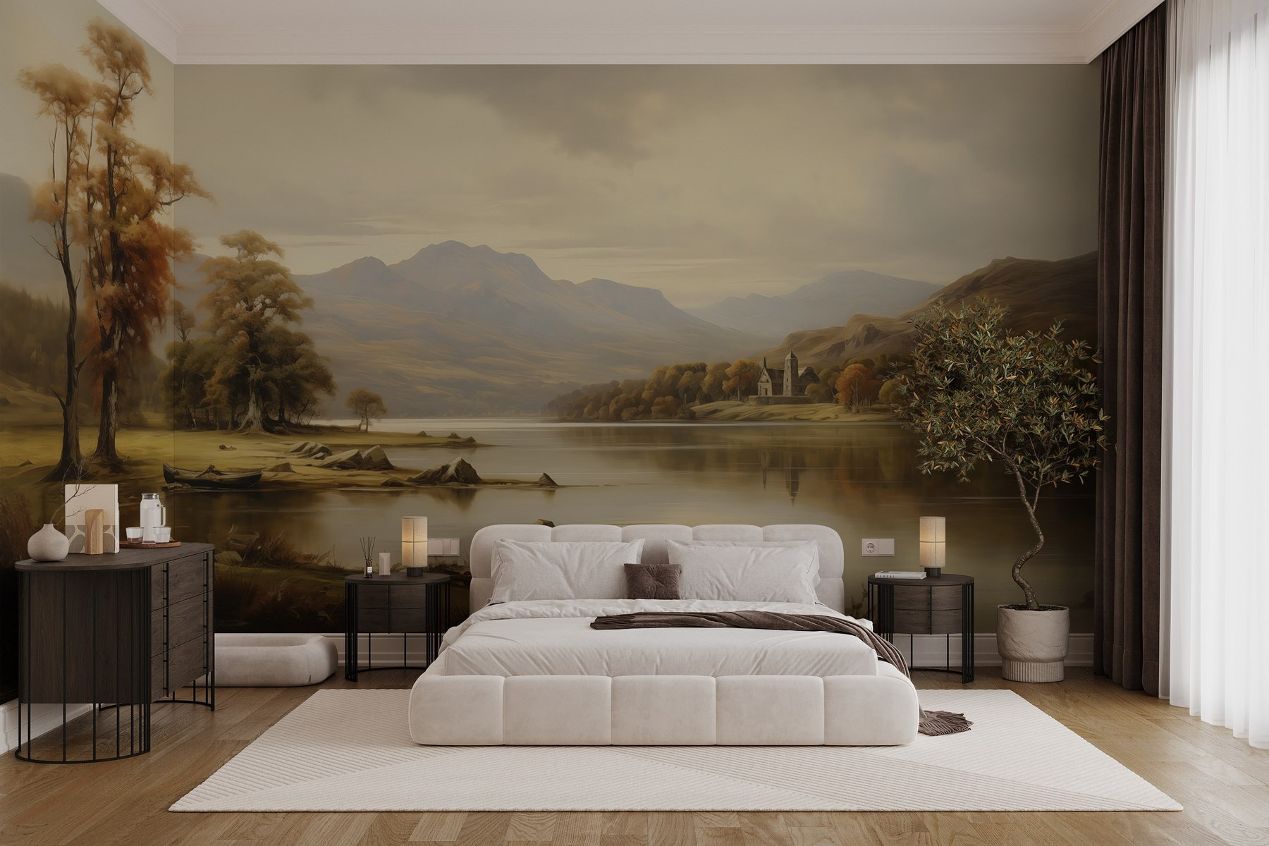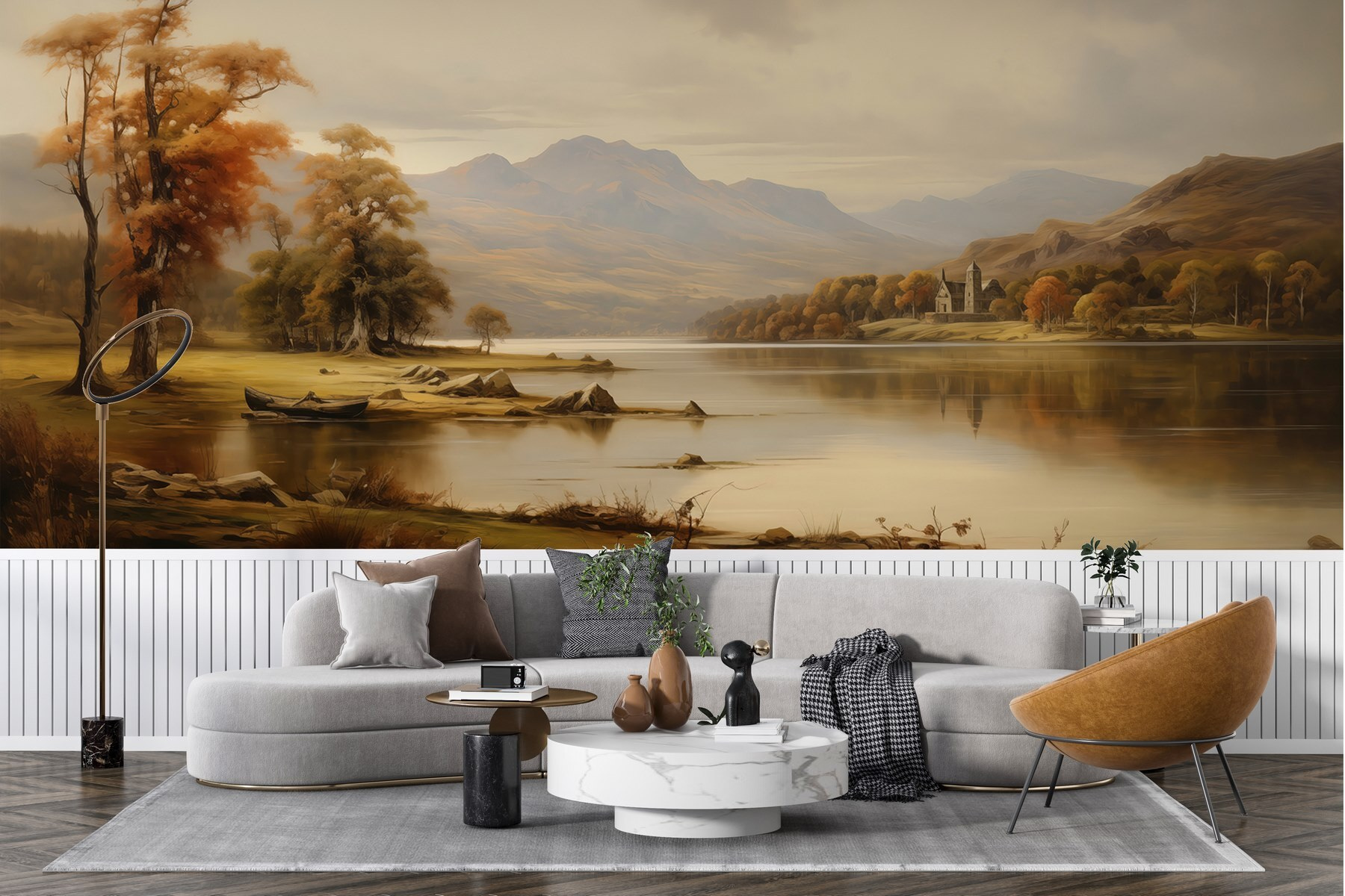 Transformați orice spațiu într-o escapadă liniștită cu această pictură murală uimitoare care prezintă un lac liniștit înconjurat de copaci și munți maiestuoși. Imaginați-vă că vă treziți în fiecare zi în fața acestei scene liniștite, simțind că ați pășit direct în îmbrățișarea naturii. Nuanțele calde evocă un sentiment de calm, în timp ce unduirile blânde ale apei stârnesc un pic de visare cu ochii deschiși. Fie că este pentru un living confortabil sau un dormitor liniștitor, această pictură murală șoptește relaxare. S-ar putea chiar să inspire o drumeție spontană de weekend – doar fiți pregătiți pentru cizmele pline de noroi de după aceea!