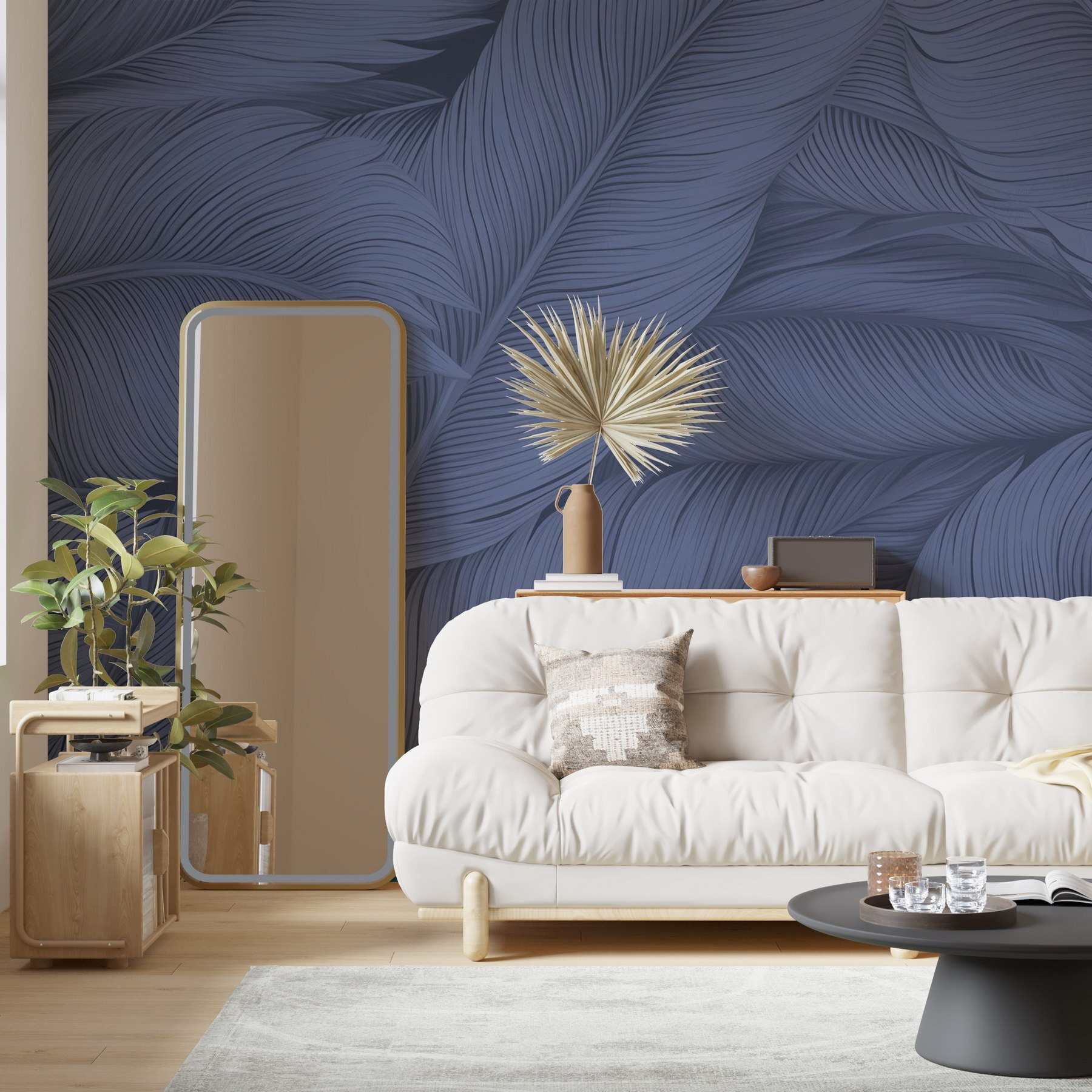 Transformați orice cameră într-o evadare tropicală cu Fototapet Textured Blue Leaves. Imaginați-vă că pășiți în spațiul dvs. și vibrațiile de calm vă invadează ca o briză liniștitoare a oceanului. Aceste frunze moi și curgătoare creează un dans al blândeții și seninătății, ideal pentru a transforma pereții obișnuiți într-un refugiu inspirat din natură. Imaginați-vă sorbindu-vă cafeaua de dimineață aici, înconjurați de nuanțe luxuriante de albastru care se simt aproape ca o îmbrățișare caldă. S-ar putea să vă facă să visați cu ochii deschiși la plaje nisipoase și cer însorit. Perfect pentru sufragerii, dormitoare sau chiar pentru acel colțișor de lectură confortabil, unde fiecare pagină pare un pic mai magică. Lasă frumusețea naturii să înflorească pe pereții tăi!