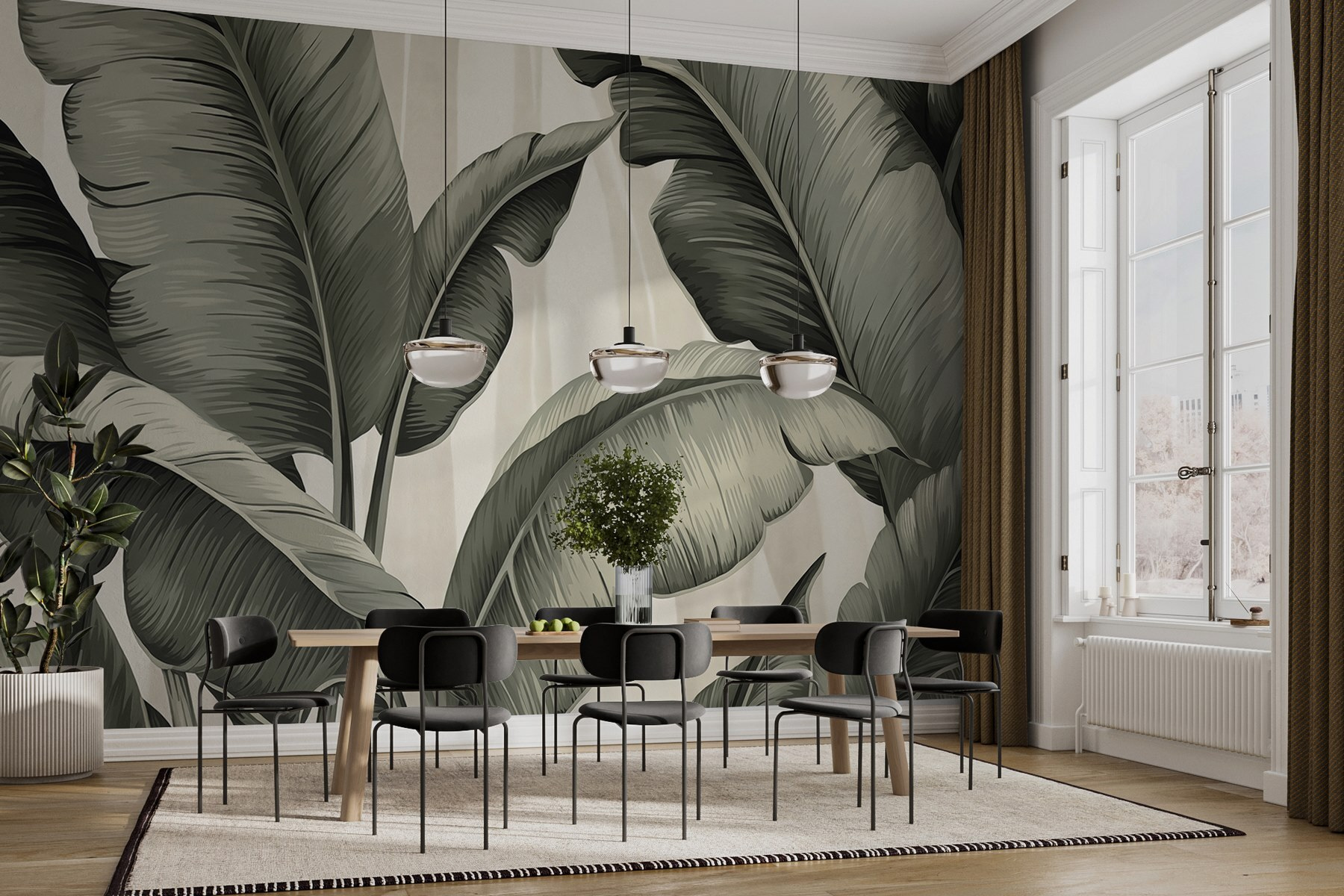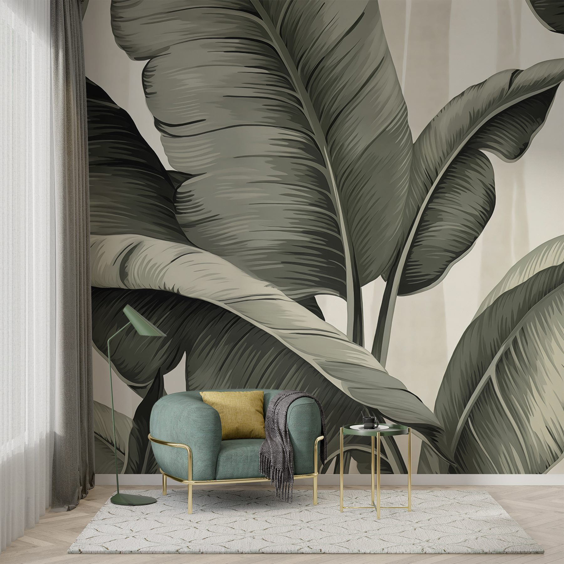 Transformați orice spațiu într-un paradis tropical cu „Arta naturii în frunzișul grațios”. Acest fototapet nu stă pur și simplu agățat pe perete; el șoptește povești despre brize calde și vegetație luxuriantă. Imaginați-vă că savurați o băutură răcoritoare, înconjurați de îmbrățișarea blândă a modelelor frunzoase care dansează pe pereții dvs. Verdele monocromatic creează o atmosferă liniștitoare, invitându-vă să vă relaxați ca și cum ați sta sub un palmier într-o după-amiază însorită. Este perfect pentru a înviora o cameră plictisitoare sau pentru a adăuga un strop de farmec natural decorului dvs. Cine ar fi crezut că frunzele pot fi atât de elegante?