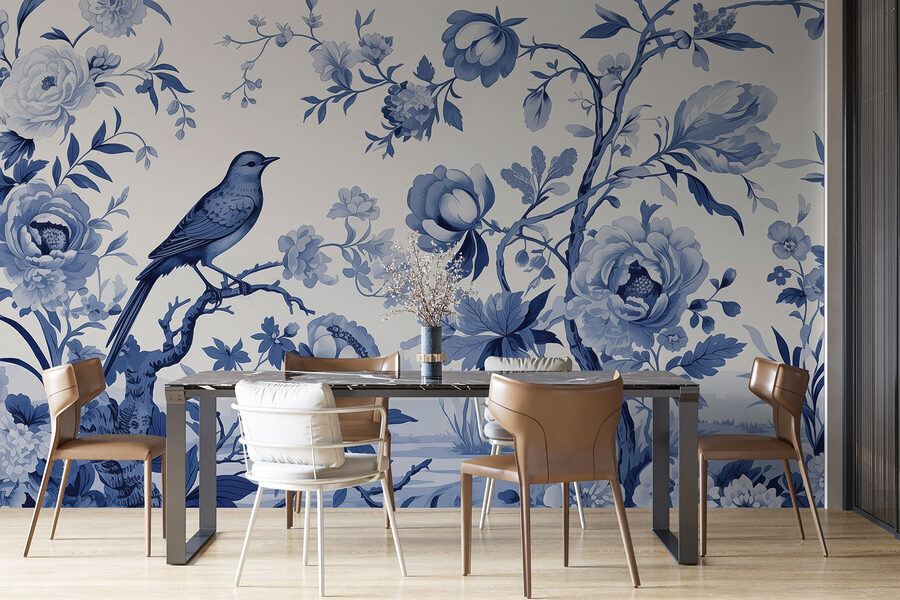 Transformați un perete simplu într-un refugiu de vis cu acest frumos mural cu o pasăre așezată pe o ramură de copac, înconjurată de flori delicate. Este ca și cum ați invita o briză ușoară în casa dvs. Imaginați-vă că savurați cafeaua de dimineață și vă simțiți transportat într-o grădină liniștită, cu nuanțe liniștitoare de albastru și un stil rafinat de acuarelă care înmoaie atmosfera camerei. Acest mural nu este doar un element decorativ; este un subiect de conversație, un moment pentru a face o pauză și a vă bucura de micile minuni ale vieții. Perfect pentru un colț confortabil sau pentru acel perete care are nevoie de puțină atenție, aduce instantaneu căldură și farmec. Pereții dvs. vă vor mulțumi!