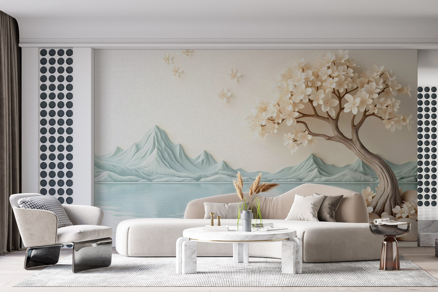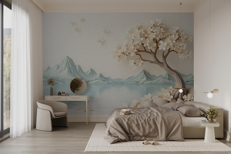 Transformați-vă spațiul într-un refugiu liniștit cu acest superb fototapet, „Copac cu flori și pietre lângă apă”. Imaginați-vă: un copac frumos lucrat, plin de flori delicate, aplecat grațios peste o apă liniștită. Este ca și cum ați invita o bucată de natură chiar în sufrageria dvs. Culorile moi și liniile delicate aduc instantaneu o atmosferă calmă, perfectă pentru a vă relaxa cu o ceașcă de ceai sau poate chiar cu o gustare. Și să fim sinceri, cine nu are nevoie de un fundal liniștit în timp ce se uită la serialele preferate? Acest fototapet este mai mult decât un decor; este o reamintire zilnică de a aprecia lucrurile mărunte, precum frumusețea unei flori sau un moment de liniște lângă apă.