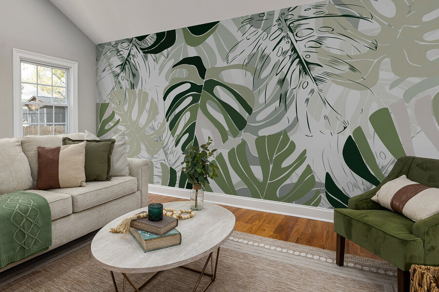 Transformați un perete simplu într-o evadare vibrantă cu această frumoasă pictură murală cu modele de frunze. Imaginați-vă acest lucru: soarele pătrunde pe fereastră, cu aceste frunze verzi luxuriante dansând pe un fundal alb strălucitor. Este ca o junglă interioară, fără gândacii enervanți! Acest design adaugă o vibrație răcoritoare oricărei încăperi – perfect pentru un colț de lectură confortabil sau pentru a înveseli holul plictisitor. Imaginați-vă sorbind cafea înconjurat de acest frunziș vesel, simțindu-vă ca într-o escapadă tropicală. Este primitoare, proaspătă și emană farmecul naturii. Pregătiți-vă să insuflați viață spațiului dumneavoastră!