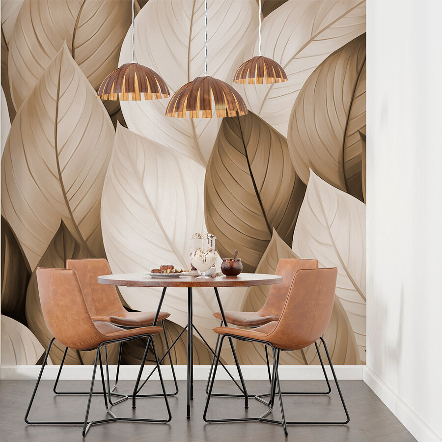 Transformați orice cameră într-o oază de liniște cu acest tapet uimitor, decorat cu frunze maro și albe. Imaginați-vă că intrați și sunteți învăluiți de îmbrățișarea calmă a naturii. Nuantele delicate creează o atmosferă caldă, perfectă pentru serile confortabile sau diminețile luminoase și însorite. Este ca și cum ați avea o bucățică din natură chiar în casa dvs., fără insecte! Imaginați-vă o întâlnire cu prietenii, în care toată lumea se simte relaxată și fericită, doar pentru că pereții par o pădure liniștită. Perfect pentru sufragerie sau chiar pentru un dormitor liniștit – la doar câțiva pași de o mini-vacanță în fiecare zi!