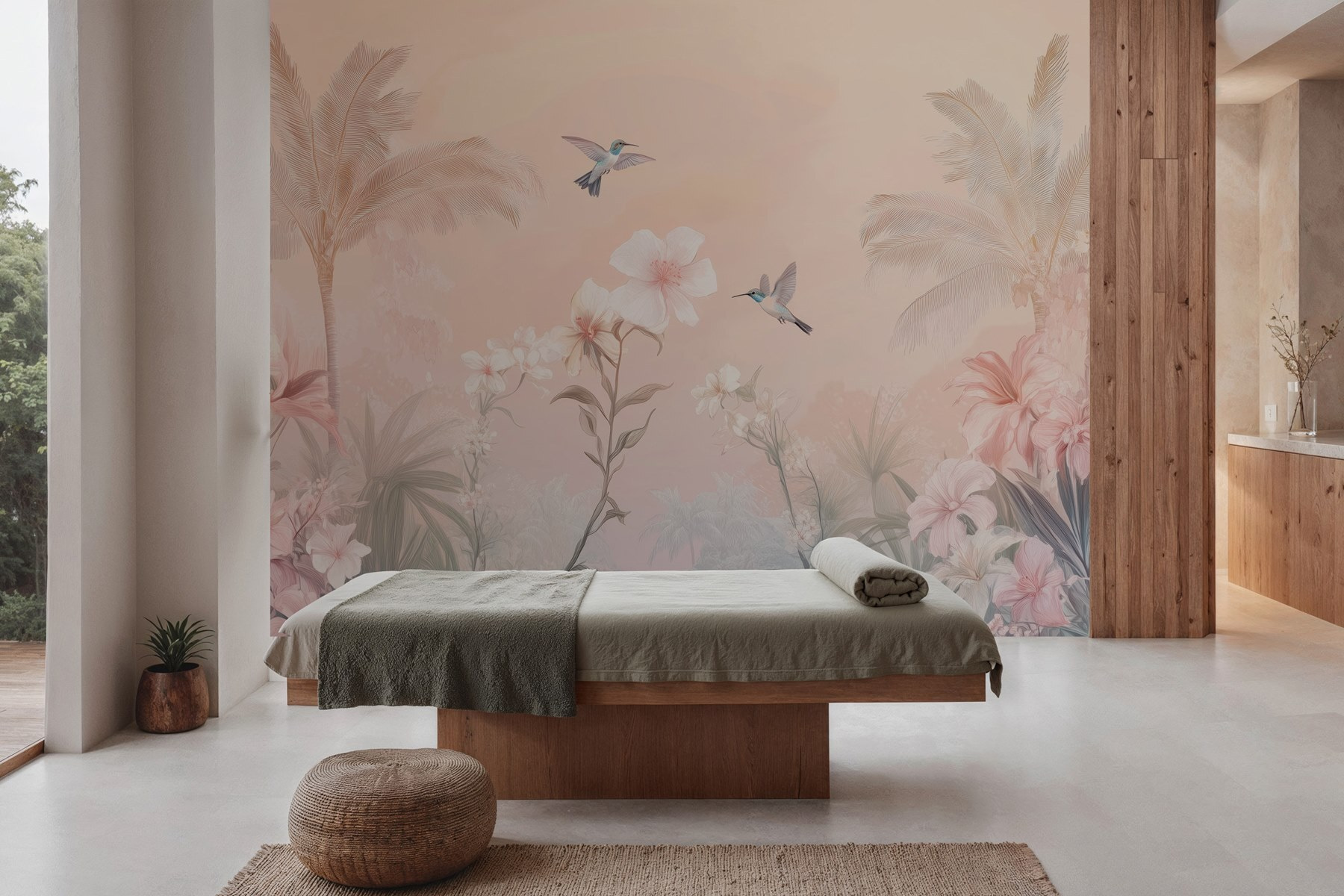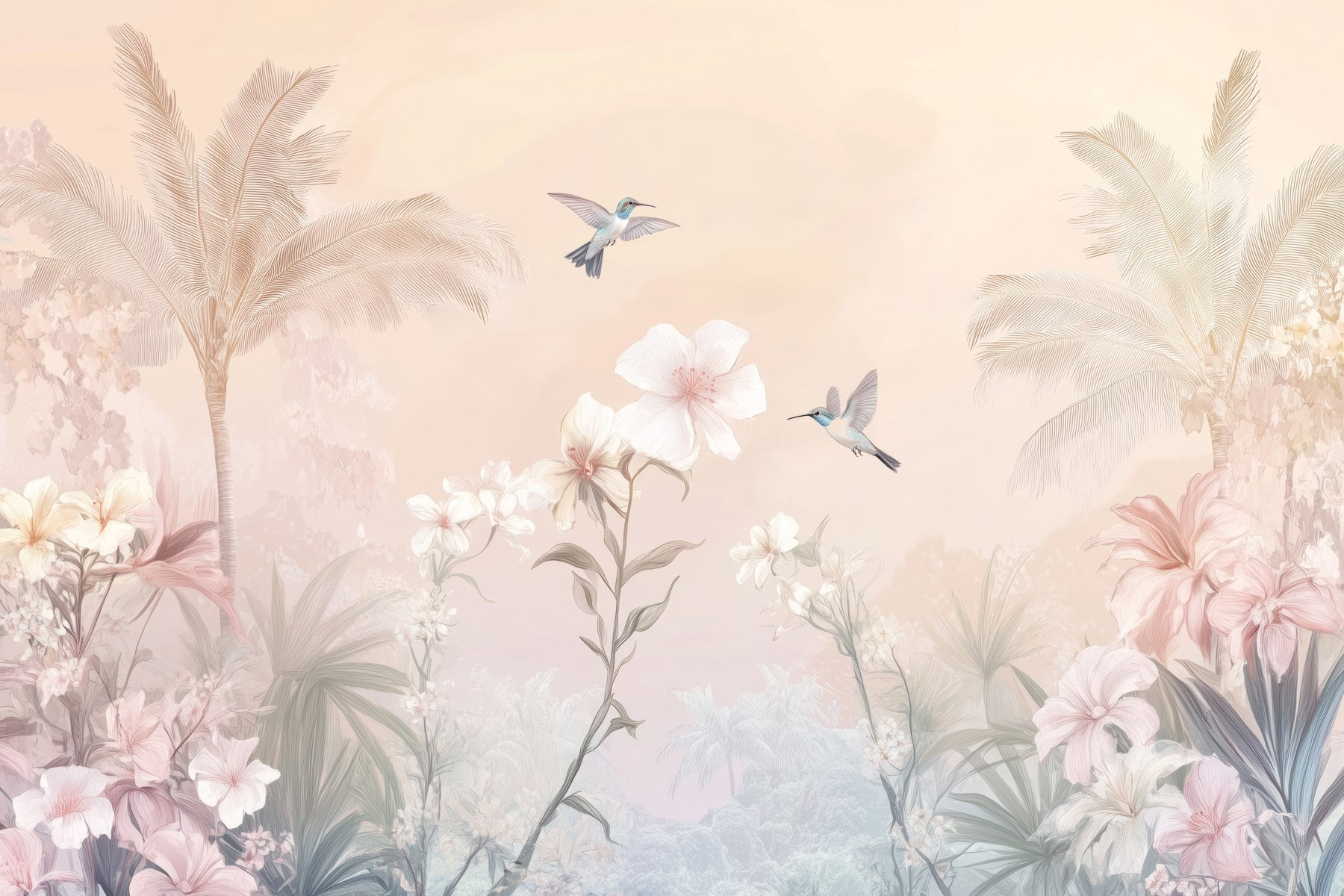 Transformați-vă spațiul cu acest mural încântător, „Grup de păsări zburând peste flori”. Imaginați-vă: păsări vibrante zburând deasupra florilor luxuriante, aducând un strop de natură chiar în casa dvs. Nu este doar o simplă decorațiune de perete, ci o amintire zilnică a frumuseții dincolo de cele patru pereți ai casei dvs. Imaginați-vă că sorbiți din cafea, visând cu ochii deschiși în timp ce admirați această minune tropicală. Culorile delicate creează o atmosferă primitoare, făcându-l un fundal perfect pentru întâlniri confortabile sau momente liniștite petrecute singur. Este ca o mică bucată de paradis, doar că fără nisip! Florile șoptesc povești despre brize calde, iar păsările? Ele ar putea inspira o petrecere spontană cu dans. Scufundați-vă în acest paradis floral!