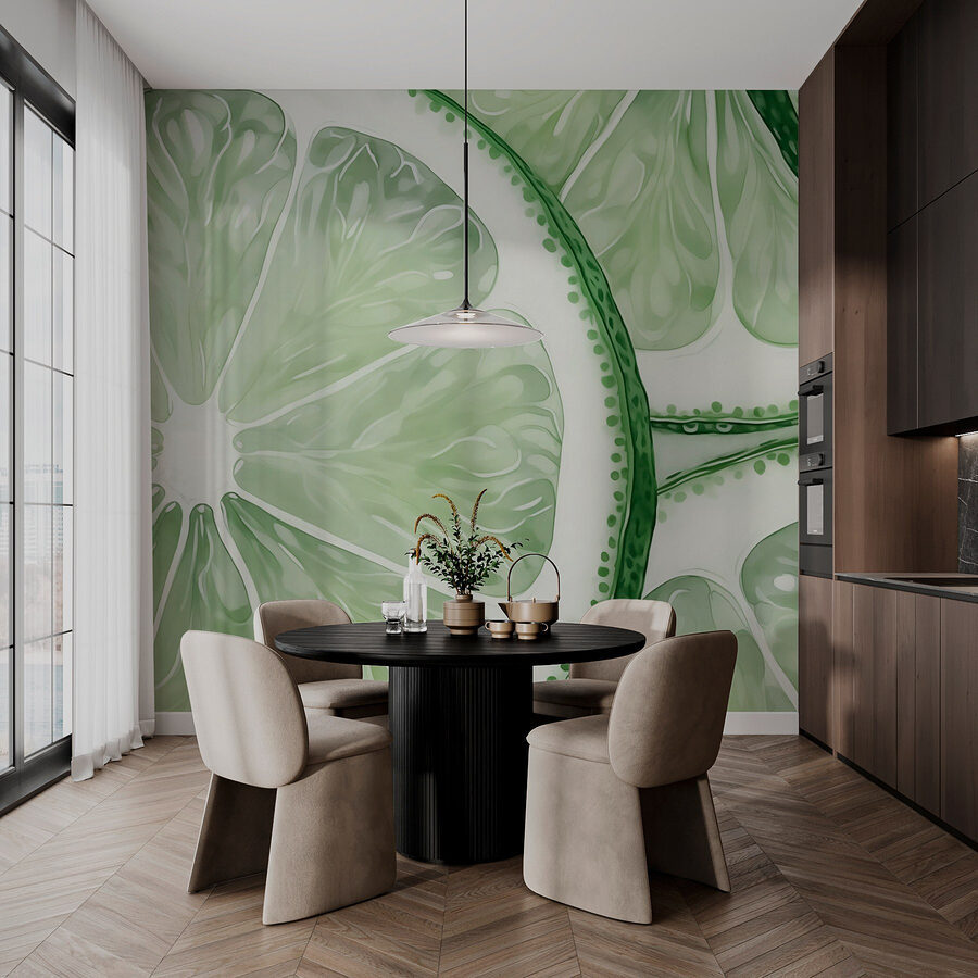 Aduceți un vibe zemos spațiului dvs. cu această pictură murală fermecătoare cu felii proaspete de lămâie verde stivuite împreună. Este luminos, jucăuș și exact ceea ce trebuie pentru a condimenta o bucătărie sau o zonă de luat masa. Imaginați-vă că găzduiți o petrecere la cină – creează o scenă pentru râsete, mâncare bună și poate chiar câteva margarita. Verdele vibrant și detaliile complicate vă dau senzația că pășiți direct într-o piață de fructe. În plus, lămâile sunt atât de răcoritoare; adaugă un sentiment de energie fără a fi copleșitoare. Perfect pentru toți cei care cred în puterea unei atmosfere vesele. Bucurați-vă de explozia de creativitate pe care o aduce această pictură murală și vedeți cum pereții dvs. se transformă într-o sursă vie de conversație.