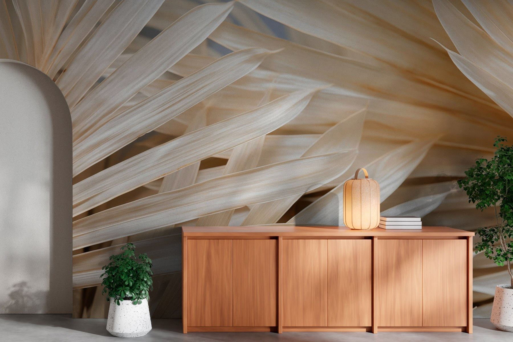 Transformați-vă spațiul într-un refugiu liniștit cu muralul „Eleganța naturală a frunzelor de palmier”. Imaginați-vă că pășiți într-o oază liniștitoare de fiecare dată când intrați în cameră. Aceste frunze de palmier moi și fluide aduc atmosfera tropicală direct pe pereții dvs. – perfect pentru a adăuga o notă de natură fără grija udării plantelor!