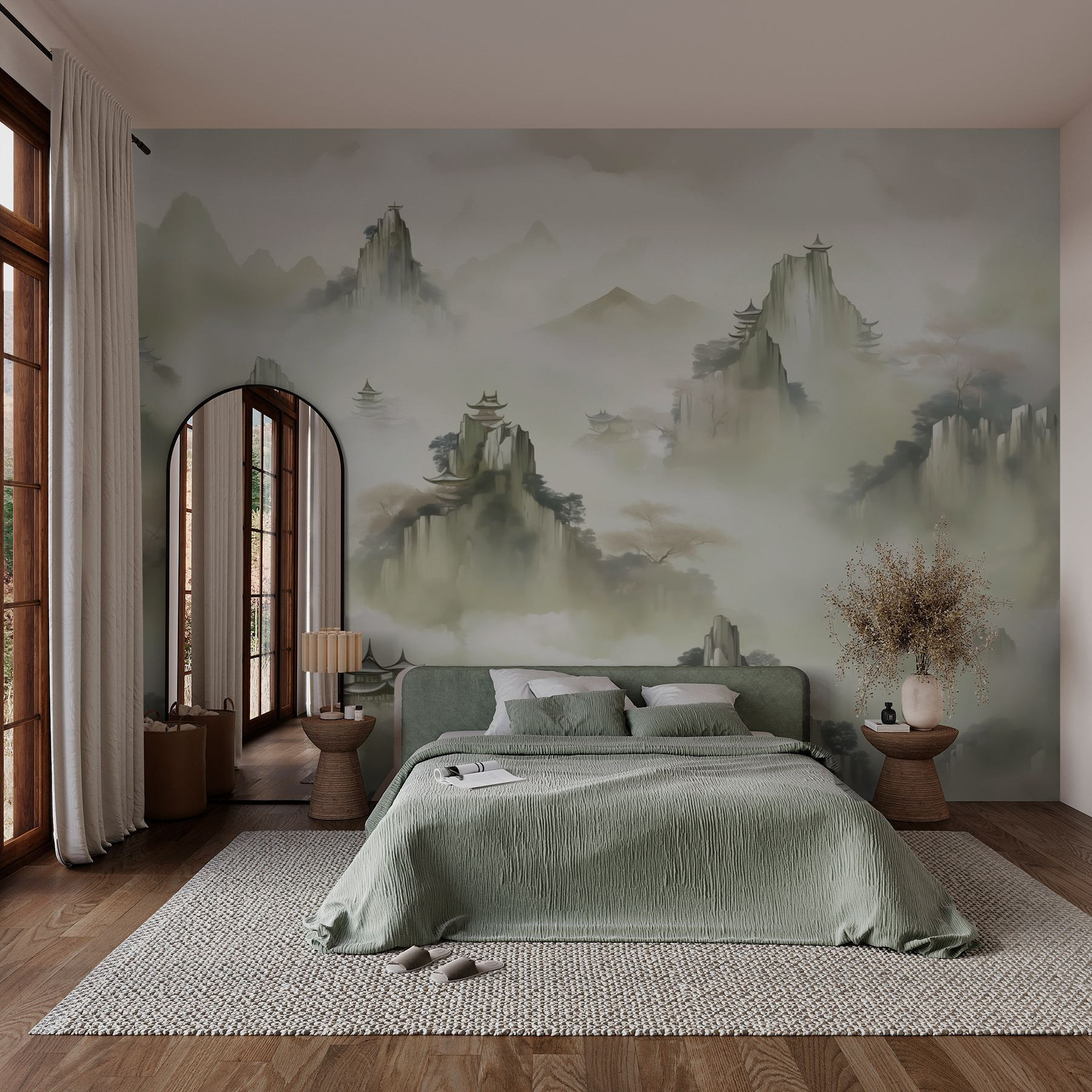 Transformați orice cameră într-un refugiu liniștit cu acest superb fototapet cu un peisaj de vis. Imaginați-vă: munți încețoșați se ridică grațios în fundal, în timp ce copaci delicati se leagănă ușor în adierea vântului. Această capodoperă în acuarelă nu este doar o decorațiune, ci o invitație de a vă relaxa și de a vă lăsa imaginația să zburde. Nuantele delicate creează o atmosferă calmă, care vă face să vă simțiți ca și cum ați savura un ceai într-un refugiu liniștit la munte, fără a fi nevoie de bocanci de drumeție! Fie că se află într-un living confortabil sau într-un dormitor liniștit, acest fototapet vă șoptește: „Relaxați-vă, sunteți acasă”. Perfect pentru cei care iubesc o notă artistică în spațiul lor.