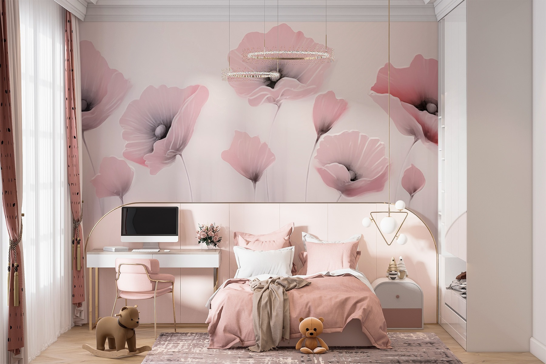 Transformați-vă spațiul cu acest minunat fototapet cu flori delicate, pictate în acuarelă, care înveselesc instantaneu orice cameră! Imaginați-vă că vă treziți înconjurați de aceste flori delicate, roz și gri – este ca și cum ați avea o grădină în interior, fără a fi nevoie să o udați. Aveți prieteni în vizită? Probabil se vor întreba cum de au avut norocul să stea într-o cameră care pare o galerie de artă. În plus, culorile liniștitoare creează o atmosferă perfectă pentru relaxare sau creativitate. Este un memento încântător că frumusețea poate înflori chiar acasă, fără a fi nevoie de talent la grădinărit. Cine ar fi crezut că un simplu fototapet poate transmite un mesaj atât de vesel?