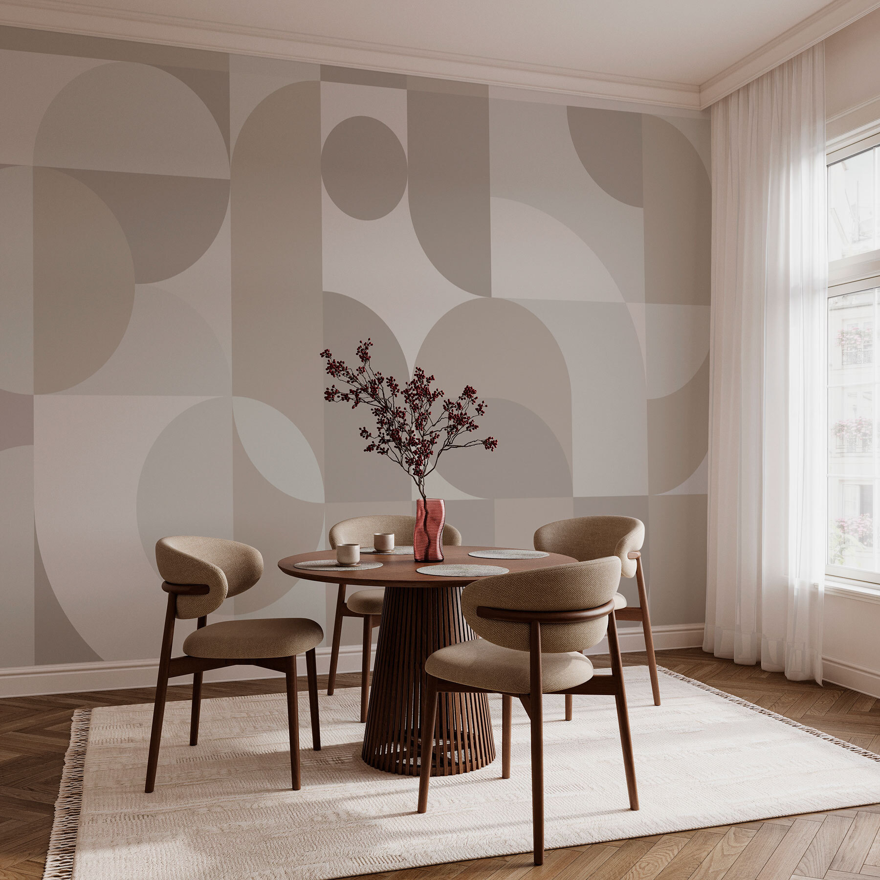 Transformați-vă spațiul cu acest superb mural geometric în culori gri și alb! Este ca și cum ați aduce o galerie de artă modernă chiar în sufrageria dvs., fără cafea sofisticată și conversații incomode. Modelele jucăușe trezesc curiozitatea și stârnesc bucurie, transformând orice perete într-un subiect de conversație. Imaginați-vă seri confortabile, lumina blândă a lămpii și acest mural ca fundal pentru râsete și povești. Perfect pentru acel perete gol care vă judecă de prea mult timp. Dă-i camerei tale personalitate fără a o aglomera. Spune adio pereților plictisitori; bun venit, vibrații elegante!