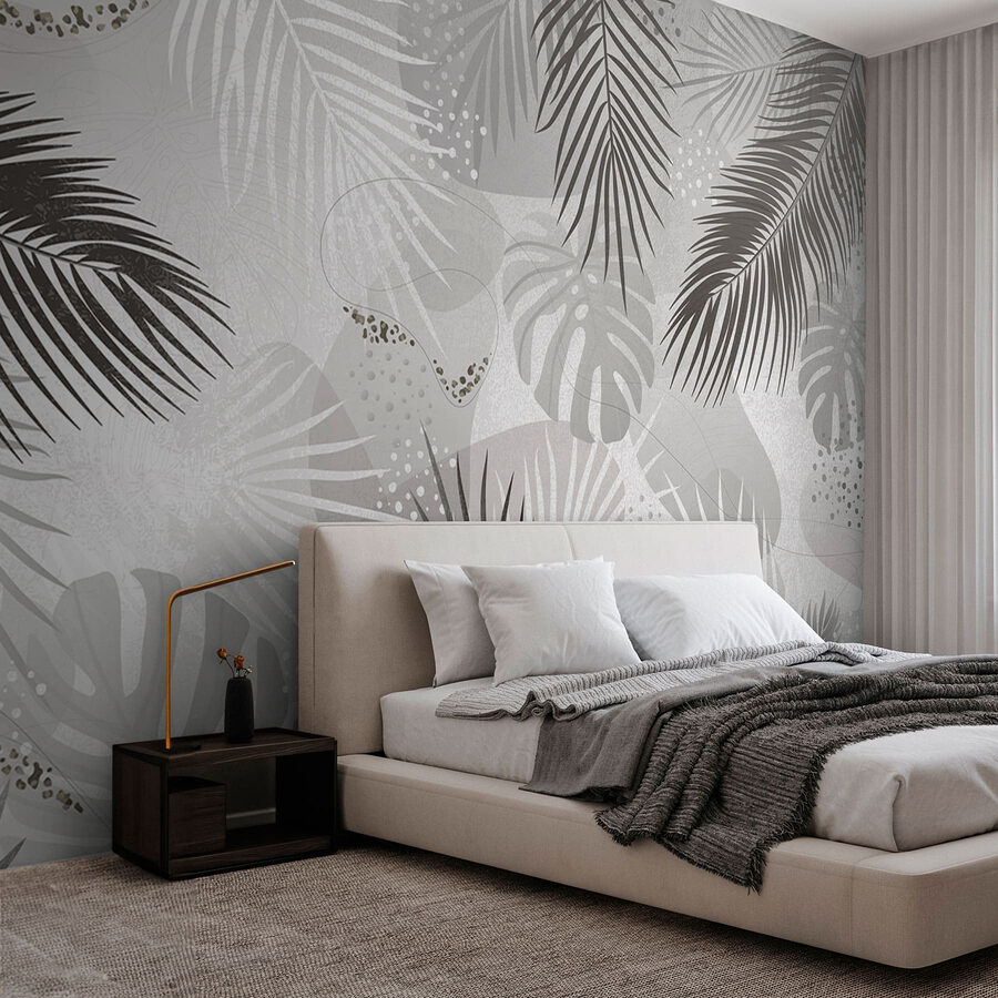 Transformați orice cameră cu acest tapet uimitor, cu un fundal elegant în culori gri și alb, decorat cu frunze elegante. Este ca și cum ați aduce o adiere de tropice în casa dvs., fără umiditate! Imaginați-vă că intrați în spațiul dvs. de locuit și simțiți calmul naturii cuprinzându-vă. Jocul jucăuș al nuanțelor poate stârni invidia celor din jur, mai ales în timpul reuniunilor – toată lumea vă va întreba de unde l-ați găsit. Acest fototapet nu doar decorează, ci creează o atmosferă, transformând pereții banali într-o declarație de stil. Perfect pentru oricine dorește să adauge o notă de modernitate, păstrând în același timp serenitatea și rafinamentul. Cine ar fi crezut că un perete poate fi atât de primitor?