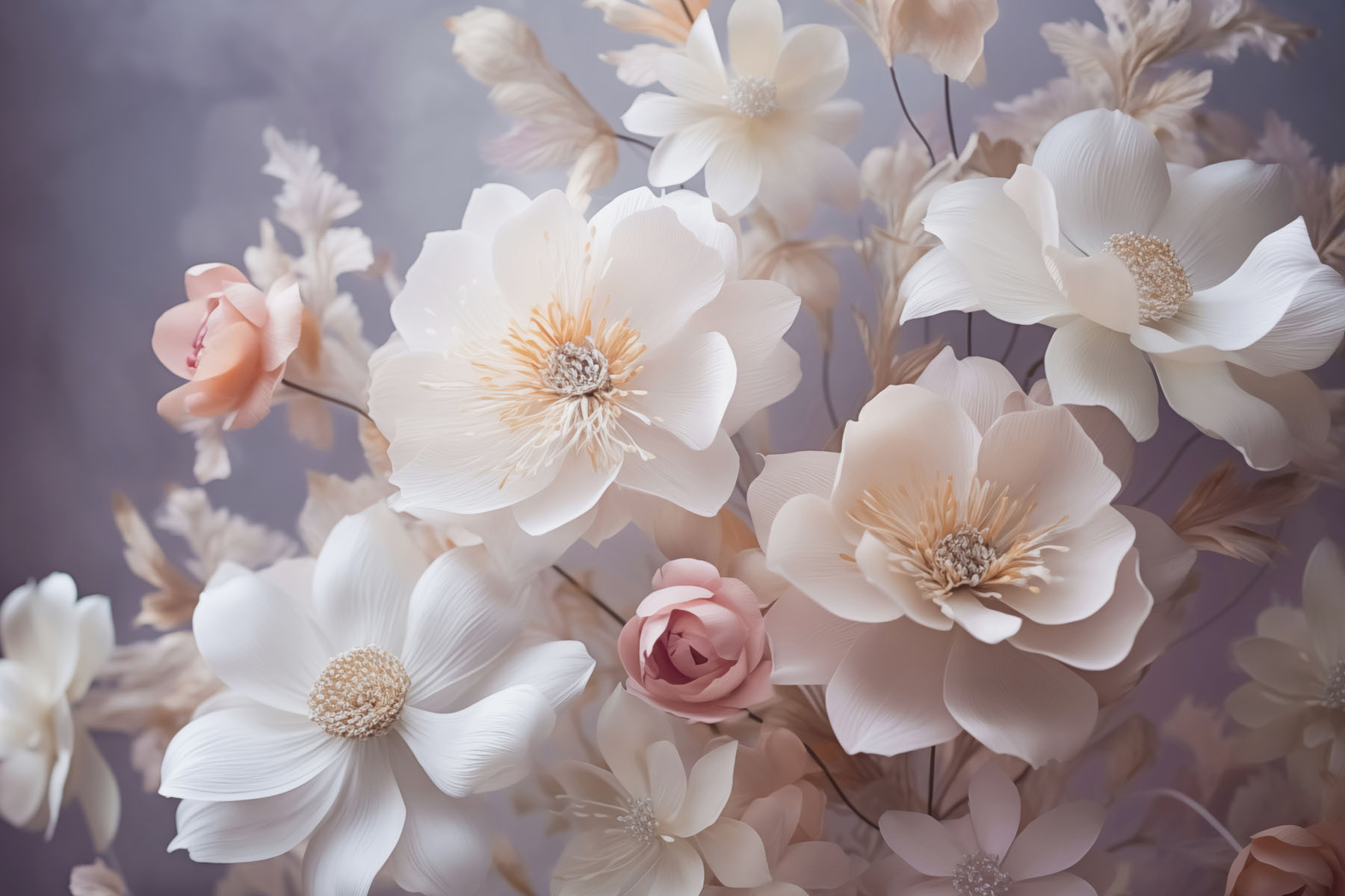 Pășiți într-o lume plină de delicatețe și farmec cu „Grupul de flori albe și roz pentru fototapet”. Acest fototapet nu doar decorează, ci vă invită într-o grădină plină de liniște, chiar în propria dvs. casă. Imaginați-vă cum savurați cafeaua de dimineață în timp ce admirați aceste flori delicate, fiecare petală șoptindu-vă secrete de serenitate. Este ca și cum ați aduce în casă un parfum slab și dulce de primăvară, fără a mai fi nevoie să udați plantele! Paleta delicată de roz și alb adaugă o notă de romantism oricărei camere, făcând-o pur și simplu irezistibilă. Fie că este vorba de un colț confortabil sau de un perete îndrăzneț, acest mural leagă totul împreună. Imaginați-vă oaspeții intrând și oprindu-se, captivați de căldura sa. Perfect pentru oricine visează la o oază florală – nu este nevoie să aveți mâna verde!