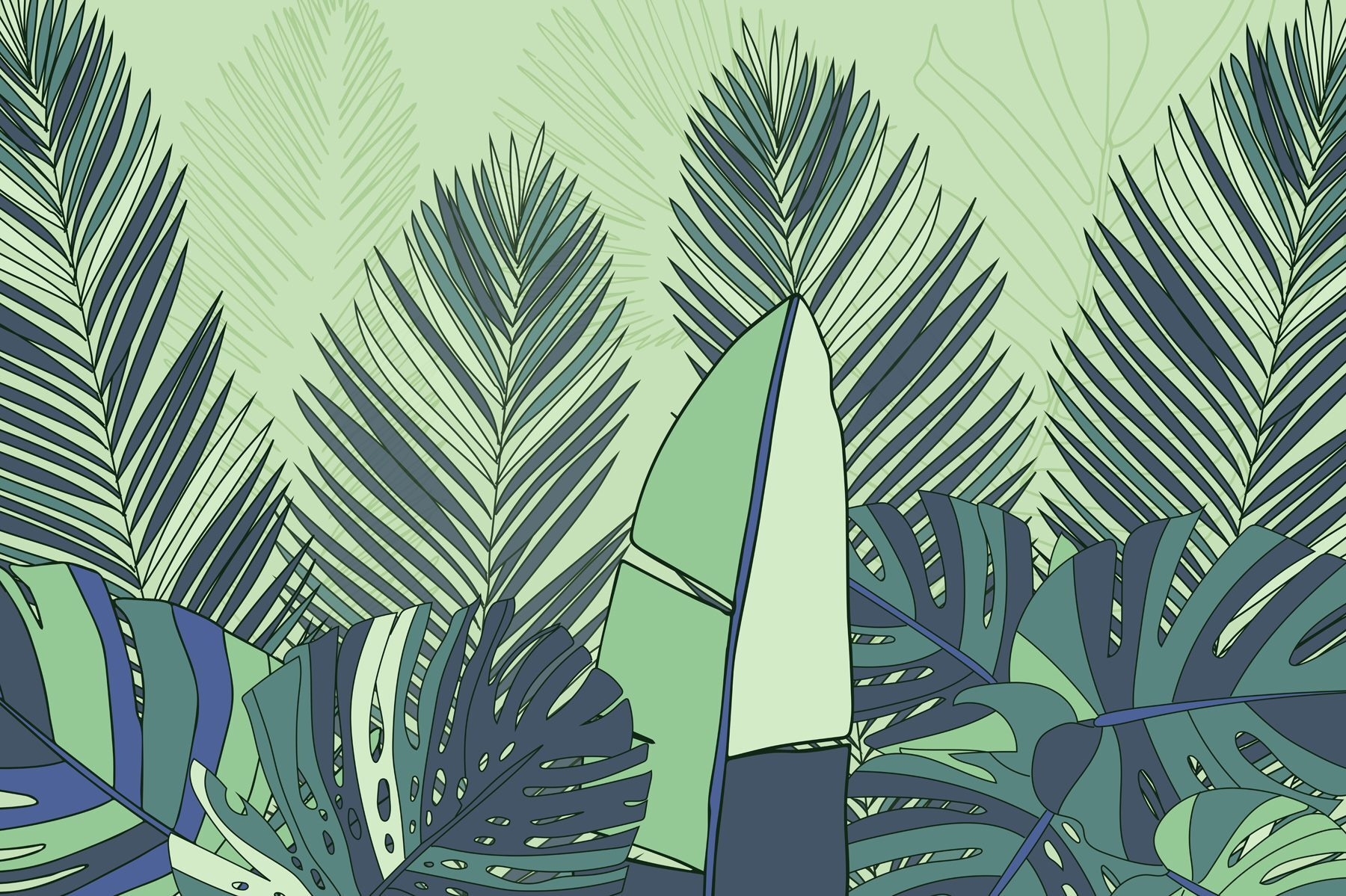 Transformați orice cameră cu acest mural încântător, care prezintă un amestec vibrant de frunze verzi și albastre. Este ca și cum ați aduce o bucată din tropice direct în casa dvs., fără umiditate și insecte! Imaginați-vă: savurați cafeaua de dimineață înconjurat de frunziș luxuriant. Acest mural luminează instantaneu spațiul dvs., creând o atmosferă calmă, perfectă pentru relaxare după o zi lungă. Imaginați-vă cum ar putea stârni puțină invidie în rândul prietenilor când o vor vedea: „Uau, ai propria ta pădure tropicală!” Perfectă pentru sufragerii, dormitoare sau chiar pentru colțul confortabil de lectură. Este natură, dar cu stil!