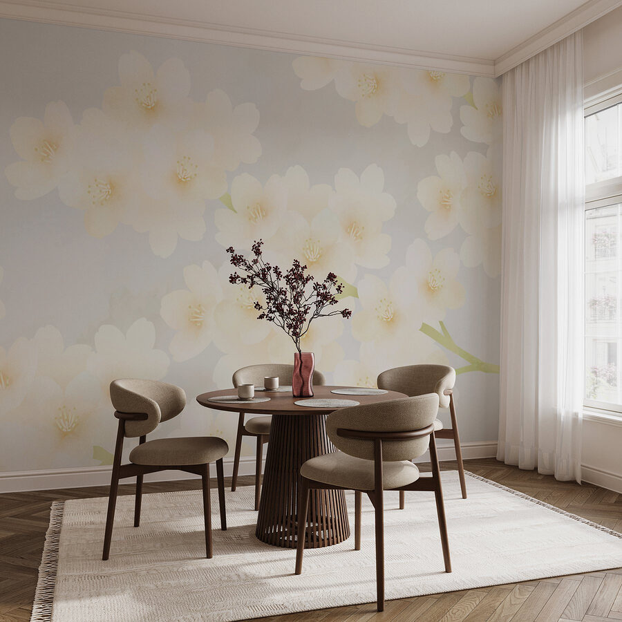 Înveselește orice spațiu cu acest tapet uimitor, care prezintă un grup fermecător de flori albe. Imaginează-ți: intri într-o cameră plină de lumină blândă a soarelui și acolo sunt, acele flori delicate, ca o mică invitație a naturii la relaxare. Acest tapet nu este doar agățat pe perete; el transformă întreaga atmosferă, creând o oază de liniște chiar acasă. Prietenii se vor opri să admire, poate chiar vă vor întreba dacă aveți o grădină secretă. Perfect pentru un colț confortabil sau un spațiu de lucru inspirator, este proaspăt și totuși atemporal. Lăsați pereții să spună o poveste despre frumusețe și liniște!